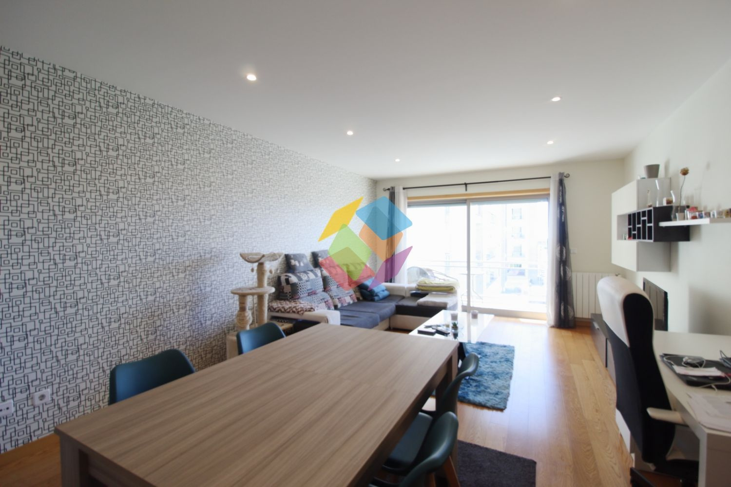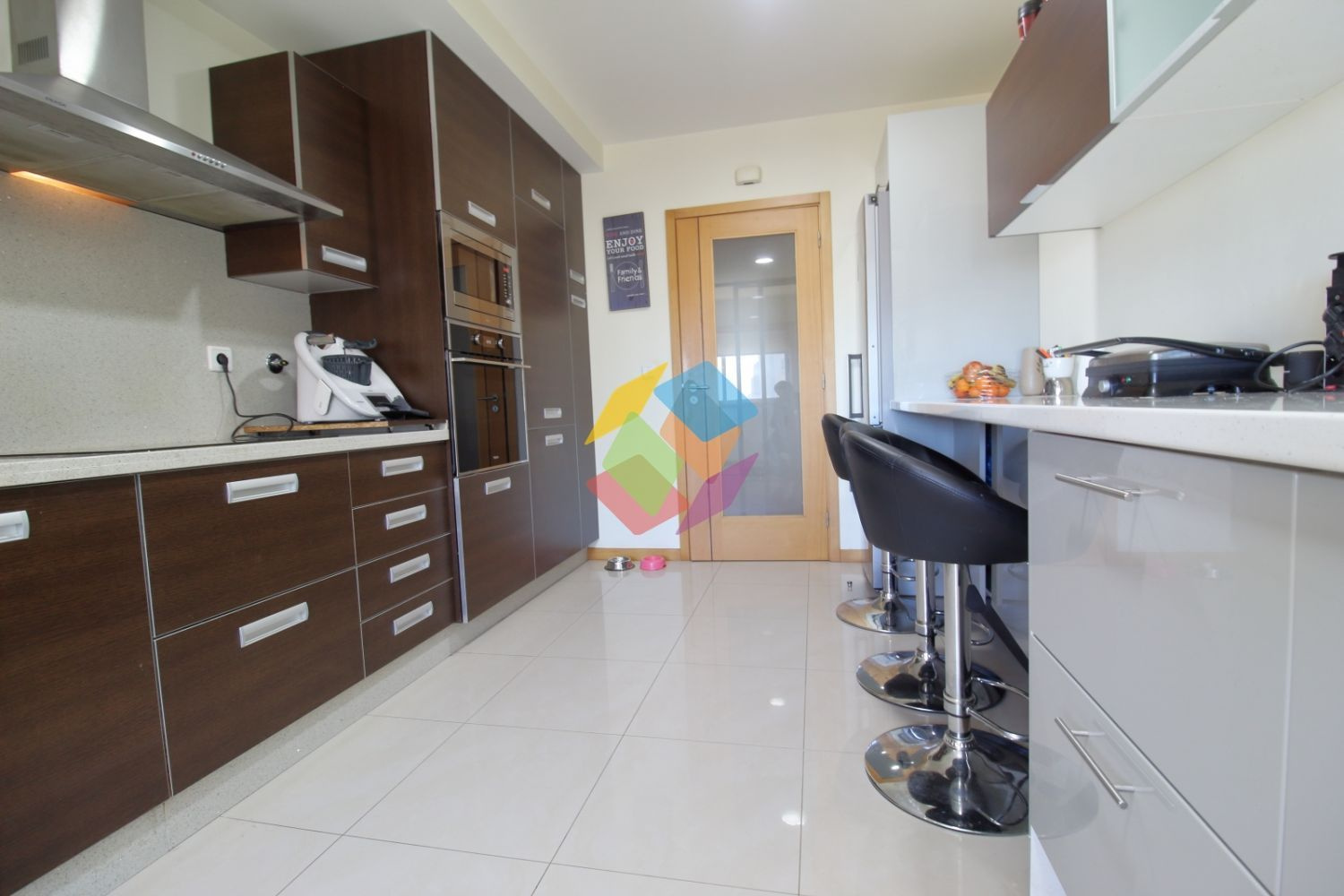 Apartamento T2 Passionistas em Santa Maria Feira em Exclusivo..Apartamento Semi-novo em excelente estado de conservação com uma localização privilegiada em zona calma e familiar, junto de vários serviços e de fáceis acessos..Apartamento T2 com divisões amplas, desde cozinha em wenguê com eletrodomésticos encastravéis da marca Teka, lavandaria, sala com varanda, dois quartos com roupeiros embutidos, sendo um deles suite com base de duche, casa de banho com banheira de hidromassagem e móveis suspensos e garagem fechada para uma viatura..Apartamento no 1.º Andar com Elevador equipado com aquecimento central, tetos falsos com led´s embutidos, caixilharia em alumínio com vidro duplo, esquentador inteligente...Marque já a sua visita...AMI 10354