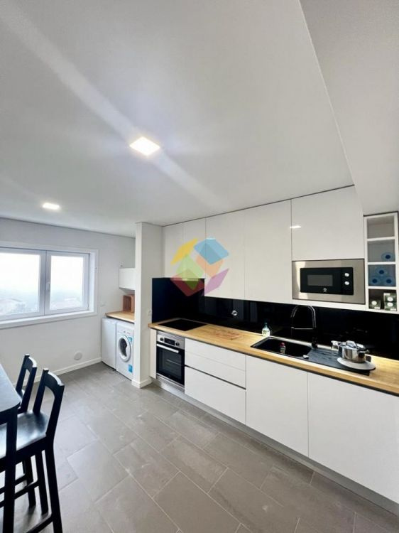 Apartamento T2 em Sanfins no terceiro e último andar..Apartamento de tipologia T2 com boas áreas e excelentes acabamentos..Composto por cozinha equipada c/eletrodomésticos encastráveis como placa de indução, forno, micro-ondas, exaustor, móveis termo-laminados lacados a branco,..- Sala com lareira e com instalação de ar condicionado, acesso a varanda, hall de entrada, .- Quartos com roupeiros embutidos, sendo que a suite tem instalação de ar condicionado,.- Caixilharia em PVC, com vidro duplo e oscilobatente,.- Tetos falsos com iluminação led embutida.- Estores elétricos, .- Garagem fechada..Imóvel com pré-instalação de aspiração central, pavimento flutuante...Excelente localização, com bons acessos N1, ...A Cubic Opportunity Mediação Imobiliária, Unipessoal, Lda. foi criada em 2014 com o objectivo de prestar um serviço especializado e abrangente em várias áreas, todas elas interligadas e dependentes, tais como imobiliária, financeira, obras, seguros e gestão, com o único intuito da máxima satisfação do cliente, uma vez que acompanhamos directamente todo o processo do início ao fim..Formada por quadros licenciados em Gestão pela Faculdade de Economia da Universidade do Porto, e por consultores externos especializados, através de parcerias com as melhores empresas do sector e especialistas em diferentes áreas, a Cubic Oppotunity mostra um serviço diferenciador, inovador e multifacetado permitindo desta forma obter sempre as melhores soluções...Marque já a sua visita.913 017 101..AMI 10354