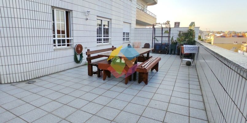 Magnífico Apartamento T3 com terraço em São João da Madeira, localizado em zona privilegiada, próximo de diversos tipos de comércio e serviços (hotel, postos de abastecimento, shopping, hipermercado, restauração, escolas, jardins, etc), com bons acessos rodoviários e 1,4 Km do acesso a N1...Imóvel em excelente estado de conservação, constituído hall de entrada, cozinha, casa de banho de serviço, sala de estar/jantar ampla com acesso direto ao excelente terraço (60m2) com churrasqueira, temos ainda 3 quartos (dois deles com armários embutidos), casa de banho completa e um salão/escritório com +/- 49m2 totalmente amplo acesso, na cave tem uma garagem fechada para 2 carros...A destacar localização privilegiada, excelentes áreas, estado do imóvel e o maravilhoso terraço com vistas sobre a cidade...Equipada com:..- Cozinha com placa, forno e exaustor,.- Recuperador de calor,.- Aquecimento central (radiadores),.- Churrasqueira,..O Edifício esta equipado com elevador...O Imóvel tem 2 frentes e esta orientado a Nascente/Poente/Norte...Procura um imóvel com boas áreas, terraço de 60m2 com vistas para a cidade e próximo de tudo, não procure mais, marque visita e comprove!..Tratamos de todo o processo de financiamento e acompanhamos o cliente até ao ato da escritura...Seja qual for a sua necessidade no mercado imobiliário, a Cubic Imobiliária está aqui para ajudar, permita-nos ser seu parceiro confiável na realização dos seus objetivos imobiliários...Para mais informações, estaremos sempre ao seu inteiro dispor...Marque a sua visita!..AMI 10354