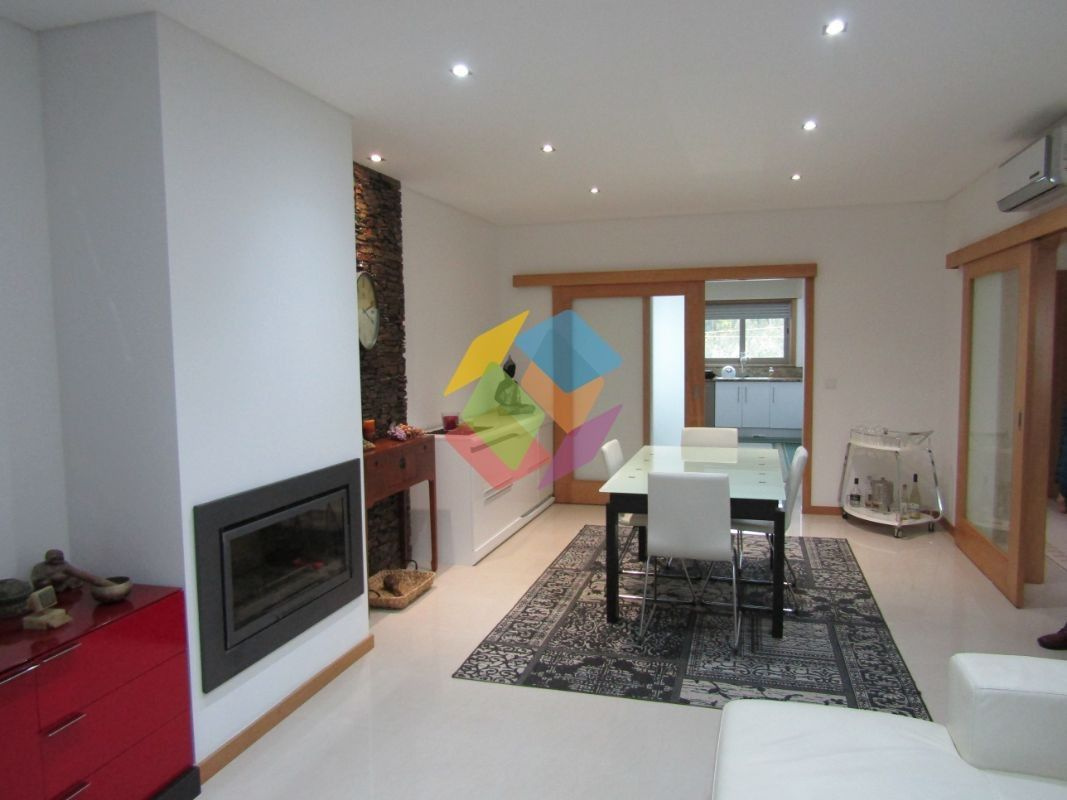 Moradia V3 geminada em Oliveira de Azeméis, localizada em zona habitacional calma, com bons acessos rodoviários e junto da cidade...O Imóvel é composto por cave, rés-do-chão e 1º andar, na cave temos garagem para 3/4 carros, casa de banho completa, sauna, acesso ao espaçoso logradouro e ao jardim das traseiras, no rés-do-chão temos cozinha equipada (placa, forno, exaustor, micro-ondas, frigorífico) com acesso direto ao terraço, sala ampla com recuperador de calor, casa de banho completa, quarto com roupeiro embutido e acesso ao terraço, hall de acesso e hall de entrada. No último piso temos 2 quartos suite com terraço individual...A Moradia esta equipada com ar condicionado em todas as divisões, aspiração central, sauna, recuperador de calor, estores eléctricos, sistema de alarme e de vídeo vigilância, portões de garagem e exteriores automáticos. ..Marque visita o que espera !!!..AMI 10354
