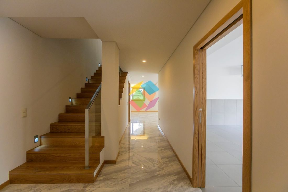 Moradia pronta a habitar a literalmente 5 minutos do centro de Santa Maria da Feira, na principal rua da freguesia de Escapães, abrangida pelos mais diversos serviços de que necessita no seu diaa-dia tais como farmácia, padaria-pastelaria, mini-mercado, clínica dentária, laboratório de análises clínicas, salão de beleza, talho, posto de correios, biblioteca, lar de 3ª idade e para os que têm filhos a localização destas moradias podem oferecer-lhe bastante estabilidade na vida familiar já que a mesma rua possui infantário, ATL, escola primária, paragem de autocarro para transporte de crianças para a EB 2 3 de Arrifana, salas de catequese e junta de freguesia onde se realizam aulas de música. Ainda na freguesia de Escapães, pode encontrar banco, pavilhão gimnodesportivo com ginásio e sauna, paragem de transporte de autocarro e de comboio para diversos locais. , ,No mesmo local, poderão usufruir de ambiente campestre, com bastante tranquilidade, o que faz destas moradias o vosso reduto para se ausentarem do stress diário. , ,A moradia compõem-se por 3 andares. , ,No nível inferior com entrada pelas traseiras encontram a garagem para dois carros, salão com cerca de 70 m2 que está independente da garagem e onde podem organizar os mais variados eventos, ou até torna-la um salão de jogos, uma casa de banho completa e ainda uma lavandaria. Através deste andar podem aceder ao grande jardim que está nas traseiras e neste mesmo jardim poderão implantar uma piscina. ,No nível intermédio, tem acesso directo com a entrada principal da moradia que se encontra três degraus acima do nível da rua, encontram: ,- escritório ou quarto se for a vossa preferência com acesso directo para o exterior, ,- cozinha com ilha totalmente completa ao nível de electrodomésticos com 30 m2, e na referida ilha encontra-se o fogão e exaustor por cima da mesma e a banca de lava louça está virada para a janela com vista para as traseiras da casa. Pela cozinha pode-se aceder directamente ao exterior da casa pelas traseiras, ,- sala com recuperador de calor com 50m2, ,- casa de banho completa, ,- despensa. , ,No nível mais superior, localizam-se os 3 quartos com varandas e com bastantes armários para arrumação, sendo dois deles suite, e ainda uma casa de banho de apoio para o quarto que não é suite, uma das suites possui também um grande closet estilo americano perfazendo uma área de 40m2, a área de acesso aos quartos é beneficiada com bastante luz natural através uma grande clarabóia ou para vislumbrar o céu estrelado à noite. ,As moradias têm uma disposição solar magnífica ficando as traseiras de ambas as moradias viradas a sul, significando que receberão luz directa durante praticamente todo o dia, e a lateral de uma das casas está virada a nascente e a outra virada a poente. , ,Áreas da primeira moradia ,- área privativa: 374,50 m2, ,- área varandas: 37,80 m2, ,- área logradouro e terreno: 472,95 m2. , ,Localização das moradias ,- a 5 minutos do centro de Santa Maria da Feira e onde se encontram os acessos para a A1 e A29, ,- a 7 minutos do centro de São João da Madeira, ,- a 15/20 minutos de Espinho pela A29, ,- 30 minutos do Porto pela A1, ,- a 5 minutos da CREP Norte Sul. , ,Marque rapidamente a sua visita e surpreenda-se de verdade pela localização, pelo tamanho e pela excelente qualidade dos materiais de ,construção e de acabamentos. , ,Durante o mês de Março aproveite a redução de preço de ? 20.000,00, aproveite. , ,AMI 10354