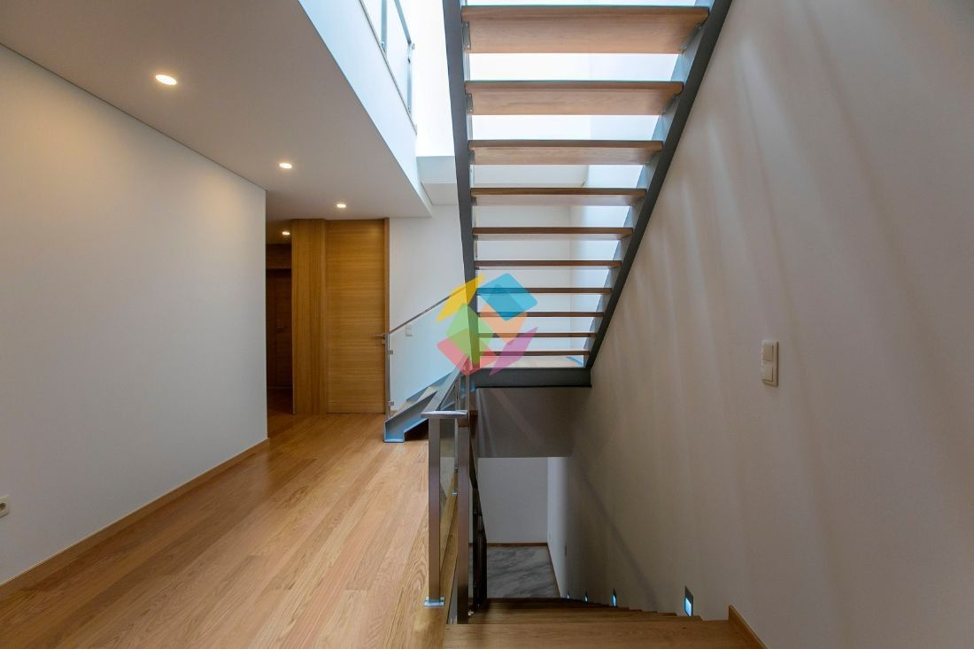 Moradia pronta a habitar a literalmente 5 minutos do centro de Santa Maria da Feira, na principal rua da freguesia de Escapães, abrangida pelos mais diversos serviços de que necessita no seu diaa-dia tais como farmácia, padaria-pastelaria, mini-mercado, clínica dentária, laboratório de análises clínicas, salão de beleza, talho, posto de correios, biblioteca, lar de 3ª idade e para os que têm filhos a localização destas moradias podem oferecer-lhe bastante estabilidade na vida familiar já que a mesma rua possui infantário, ATL, escola primária, paragem de autocarro para transporte de crianças para a EB 2 3 de Arrifana, salas de catequese e junta de freguesia onde se realizam aulas de música. Ainda na freguesia de Escapães, pode encontrar banco, pavilhão gimnodesportivo com ginásio e sauna, paragem de transporte de autocarro e de comboio para diversos locais. , ,No mesmo local, poderão usufruir de ambiente campestre, com bastante tranquilidade, o que faz destas moradias o vosso reduto para se ausentarem do stress diário. , ,A moradia compõem-se por 3 andares. , ,No nível inferior com entrada pelas traseiras encontram a garagem para dois carros, salão com cerca de 70 m2 que está independente da garagem e onde podem organizar os mais variados eventos, ou até torna-la um salão de jogos, uma casa de banho completa e ainda uma lavandaria. Através deste andar podem aceder ao grande jardim que está nas traseiras e neste mesmo jardim poderão implantar uma piscina. ,No nível intermédio, tem acesso directo com a entrada principal da moradia que se encontra três degraus acima do nível da rua, encontram: ,- escritório ou quarto se for a vossa preferência com acesso directo para o exterior, ,- cozinha com ilha totalmente completa ao nível de electrodomésticos com 30 m2, e na referida ilha encontra-se o fogão e exaustor por cima da mesma e a banca de lava louça está virada para a janela com vista para as traseiras da casa. Pela cozinha pode-se aceder directamente ao exterior da casa pelas traseiras, ,- sala com recuperador de calor com 50m2, ,- casa de banho completa, ,- despensa. , ,No nível mais superior, localizam-se os 3 quartos com varandas e com bastantes armários para arrumação, sendo dois deles suite, e ainda uma casa de banho de apoio para o quarto que não é suite, uma das suites possui também um grande closet estilo americano perfazendo uma área de 40m2, a área de acesso aos quartos é beneficiada com bastante luz natural através uma grande clarabóia ou para vislumbrar o céu estrelado à noite. ,As moradias têm uma disposição solar magnífica ficando as traseiras de ambas as moradias viradas a sul, significando que receberão luz directa durante praticamente todo o dia, e a lateral de uma das casas está virada a nascente e a outra virada a poente. , ,Áreas da primeira moradia ,- área privativa: 335,50 m2, ,- área varandas: 59,00 m2, ,- área logradouro e terreno: 300,00m2 , ,Localização das moradias ,- a 5 minutos do centro de Santa Maria da Feira e onde se encontram os acessos para a A1 e A29, ,- a 7 minutos do centro de São João da Madeira, ,- a 15/20 minutos de Espinho pela A29, ,- 30 minutos do Porto pela A1, ,- a 5 minutos da CREP Norte Sul. , ,Marque rapidamente a sua visita e surpreenda-se de verdade pela localização, pelo tamanho e pela excelente qualidade dos materiais de ,construção e de acabamentos. , ,Durante o mês de Março aproveite a redução de preço de ? 20.000,00, aproveite. , ,AMI 10354