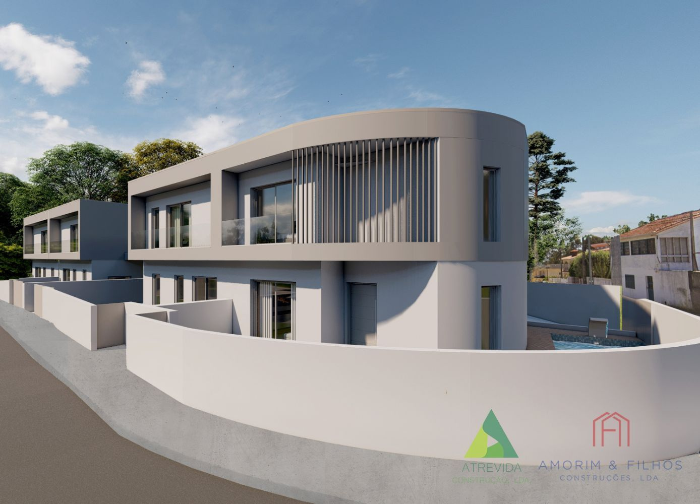 Moradia Nova em Construção Geminada T3+1 ? Argoncilhe/Grijó a 2 minutos da A1 e 5 minutos de Vila Nova de Gaia...Situada numa rua principal que dá acesso ao centro da cidade...Moradia localizada a um minuto das escolas (primária e secundária) e de todo o tipo de comércio e serviços..Bons acessos rodoviários, perto dos acessos à autoestrada...Moradia constituída por R/Chão e 1º piso:.No R/Chão apresenta-se uma garagem com capacidade para dois carros. Contém uma cozinha mobilada e equipada com eletrodomésticos de qualidade, lavandaria, sala com possibilidade de Open Space e zona para sala de jantar e Wc de serviço..Ao acedermos ao 1º piso, encontramos três quartos com roupeiros embutidos, sendo um deles suite. Um WC completo de apoio aos outros dois quartos...No exterior da moradia temos um logradouro e zona de jardim...Zona de lazer e convívio com jardim da parte detrás da moradia..A moradia com uma localização privilegiada, perto do centros abrangentes e com bons acessos, perto de tudo, aliada à construção moderna da mesma, com áreas generosas, com acabamentos de primeira, não prescindido de zonas de privacidade e lazer, fazem deste imóvel um imóvel único para quem privilegia a qualidade de vida, conforto, segurança e toda a comodidade que a moradia pode oferecer...A moradia encontra-se com a obra finalizada em 2023...Uma vez que se encontra em construção existe a possibilidade de acrescer uma divisão para escritório no rés-do-chão (preço sob consulta)...MAPA DE ACABAMENTOS..COBERTURA.Cobertura plana com isolamento ROOFMATE 80mm devidamente impermeabilizada e coberta a godo, com rufos e cabeças de muretes em chapa lacada, cor a definir...PAVIMENTOS INTERIORES.Pavimento interiores com revestimento cerâmico até 15?/m2 ou revestimento flutuante AC5, e escadaria com forra em madeira tola ou idêntico...PAVIMENTOS EXTERIORES.Pavimentos exteriores de varandas com revestimento cerâmico até 20?/m2 e restantes pisos de acesso em micro-cubo de granito da região azul/cinza...PAREDES INTERIORES.Paredes interiores desengrossadas e estanhadas com revestimento de pintura do tipo CIN VinylMatt Casas de banho e faixa entre moveis será desengrossada e com revestimento cerâmico até 15?/m2...PAREDES EXTERIROES.Sistema compósito de isolamento térmico, ETICS de 60mm no piso inferior e 80mm no piso superior com revestimento decorativo à cor branco e 3006 (cinza).Restantes paredes sem requisitos térmicos recebem aplicação de acabamento em barramento armado..TECTOS INTERIORES.Tectos falsos em gesso cartonado em todos os compartimentos interiores, incluindo placas hidrófugas nas zonas húmidas (banho e cozinha). Inclui sanefas para cortinados mas exclui sancas de luz indireta..Todos o tectos serão revestimentos a tinta do tipo CIN..SERRALHARIAS.Portão exterior automóvel e portão exterior de homem com estrutura tubular, revestido a chapa zincor 2mm, lacado..Caixilharia com ruptura térmica, vidro duplo (conforme projeto térmico) do tipo RTC e RT70 da Alesil ? cor acetinado natural..Soleiras em granito da região cinza antas..Estores térmicos à cor da caixilharia..Todos os vãos de caixilharia terão a altura total do pé direito interior até 2.15m.CARPINTARIAS.Portas interiores de abrir ou de correr com dimensão total do pé-direito ? 2.15m, folheado a tola..Apainelados, rodapés e roupeiros folheados a tola (inclui roupeiros em todos os quartos excepto no escritório do piso inferior).Móveis de cozinha termolaminados com tampo em silestone do grupo I, pia lava-louça teka encastrada na pedra com frisos na mesma, incluindo torneira, forno, micro, frigorifico e placa da marca beko num valor máximo de 5500?.Inclui também:.Pré-instalação de sistema de vigilância.Pré-instalação de sistema de alarme.Pré-instalação de ar-condicionado (6 pontos).Instalação de kit de 2 painéis com termoacumulador incorporado.Para mais informações sobre este ou outro imóvel, não hesite em entrar em contacto.AMI10354