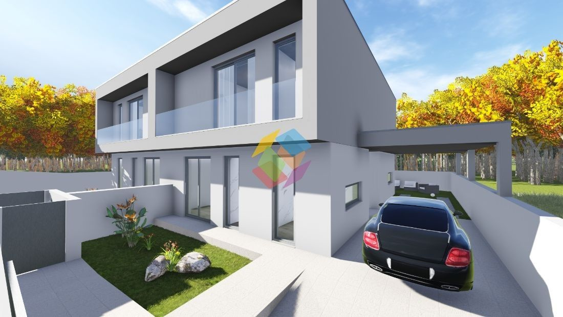 Moradia Nova em Construção Geminada T3+1 ? Argoncilhe/Grijó a 2 minutos da A1 e 5 minutos de Vila Nova de Gaia...Situada numa rua principal que dá acesso ao centro da cidade...Moradia localizada a um minuto das escolas (primária e secundária) e de todo o tipo de comércio e serviços..Bons acessos rodoviários, perto dos acessos à autoestrada...Moradia constituída por R/Chão e 1º piso:.No R/Chão apresenta-se uma garagem com capacidade para dois carros. Contém uma cozinha mobilada e equipada com eletrodomésticos de qualidade, lavandaria, sala com possibilidade de Open Space e zona para sala de jantar e Wc de serviço..Ao acedermos ao 1º piso, encontramos três quartos com roupeiros embutidos, sendo um deles suite. Um WC completo de apoio aos outros dois quartos...No exterior da moradia temos um logradouro e zona de jardim...Zona de lazer e convívio com jardim da parte detrás da moradia..A moradia com uma localização privilegiada, perto do centros abrangentes e com bons acessos, perto de tudo, aliada à construção moderna da mesma, com áreas generosas, com acabamentos de primeira, não prescindido de zonas de privacidade e lazer, fazem deste imóvel um imóvel único para quem privilegia a qualidade de vida, conforto, segurança e toda a comodidade que a moradia pode oferecer...A moradia encontra-se com a obra finalizada em 2023...Uma vez que se encontra em construção existe a possibilidade de acrescer uma divisão para escritório no rés-do-chão (preço sob consulta)...MAPA DE ACABAMENTOS..COBERTURA.Cobertura plana com isolamento ROOFMATE 80mm devidamente impermeabilizada e coberta a godo, com rufos e cabeças de muretes em chapa lacada, cor a definir...PAVIMENTOS INTERIORES.Pavimento interiores com revestimento cerâmico até 15?/m2 ou revestimento flutuante AC5, e escadaria com forra em madeira tola ou idêntico...PAVIMENTOS EXTERIORES.Pavimentos exteriores de varandas com revestimento cerâmico até 20?/m2 e restantes pisos de acesso em micro-cubo de granito da região azul/cinza...PAREDES INTERIORES.Paredes interiores desengrossadas e estanhadas com revestimento de pintura do tipo CIN VinylMatt Casas de banho e faixa entre moveis será desengrossada e com revestimento cerâmico até 15?/m2...PAREDES EXTERIROES.Sistema compósito de isolamento térmico, ETICS de 60mm no piso inferior e 80mm no piso superior com revestimento decorativo à cor branco e 3006 (cinza).Restantes paredes sem requisitos térmicos recebem aplicação de acabamento em barramento armado..TECTOS INTERIORES.Tectos falsos em gesso cartonado em todos os compartimentos interiores, incluindo placas hidrófugas nas zonas húmidas (banho e cozinha). Inclui sanefas para cortinados mas exclui sancas de luz indireta..Todos o tectos serão revestimentos a tinta do tipo CIN..SERRALHARIAS.Portão exterior automóvel e portão exterior de homem com estrutura tubular, revestido a chapa zincor 2mm, lacado..Caixilharia com ruptura térmica, vidro duplo (conforme projeto térmico) do tipo RTC e RT70 da Alesil ? cor acetinado natural..Soleiras em granito da região cinza antas..Estores térmicos à cor da caixilharia..Todos os vãos de caixilharia terão a altura total do pé direito interior até 2.15m.CARPINTARIAS.Portas interiores de abrir ou de correr com dimensão total do pé-direito ? 2.15m, folheado a tola..Apainelados, rodapés e roupeiros folheados a tola (inclui roupeiros em todos os quartos excepto no escritório do piso inferior).Móveis de cozinha termolaminados com tampo em silestone do grupo I, pia lava-louça teka encastrada na pedra com frisos na mesma, incluindo torneira, forno, micro, frigorifico e placa da marca beko num valor máximo de 5500?.Inclui também:.Pré-instalação de sistema de vigilância.Pré-instalação de sistema de alarme.Pré-instalação de ar-condicionado (6 pontos).Instalação de kit de 2 painéis com termoacumulador incorporado.Para mais informações sobre este ou outro imóvel, não hesite em entrar em contacto.AMI10354