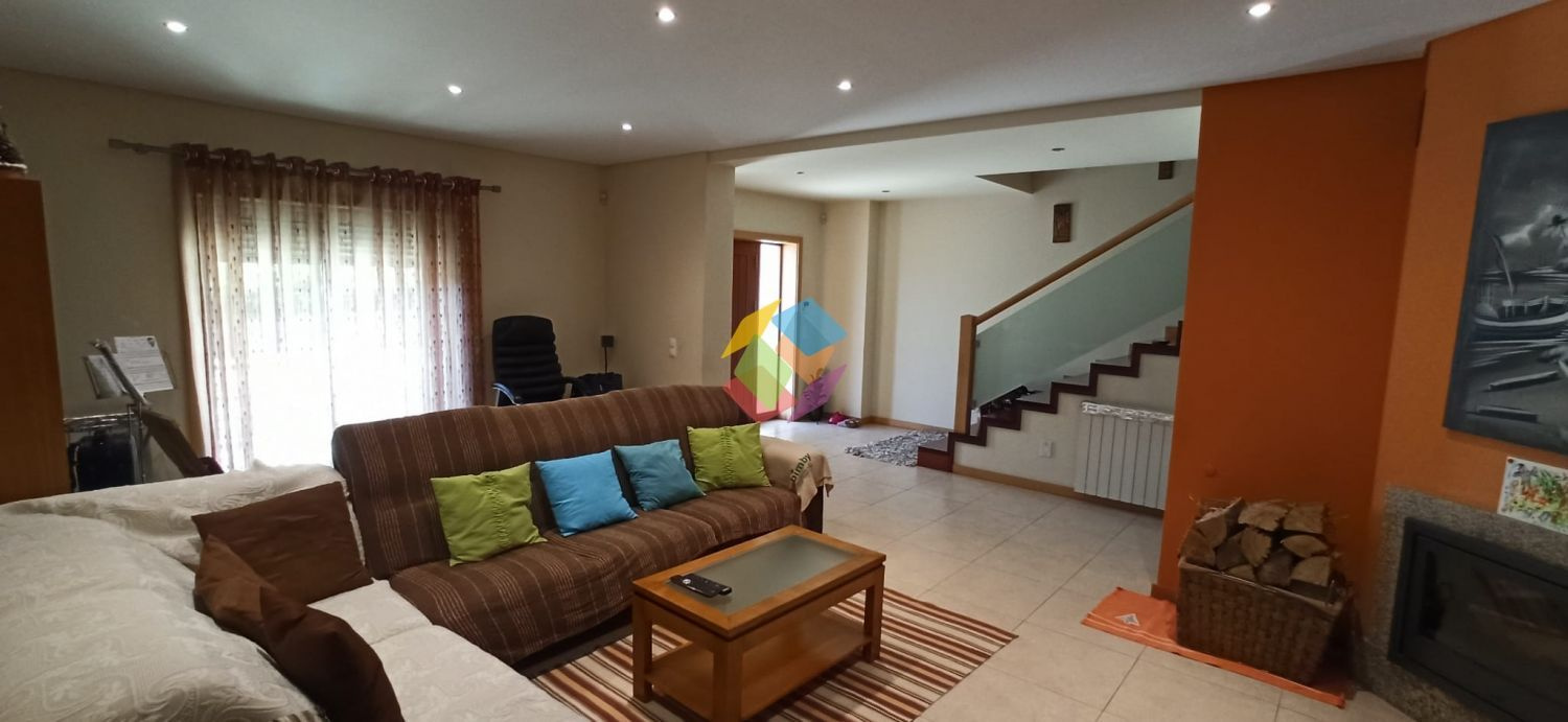 Excelente Oportunidade Moradia em Banda V3 em Argoncilhe...Moradia em Banda de três pisos..No piso 0 temos garagem fechada para três viaturas com portão automático, lavandaria, escritório e casa de banho..No piso 1 temos uma ampla cozinha totalmente equipada com eletrodomésticos e móveis em cerejeira, despensa, sala com lareira com recuperador de calor e casa de banho de serviço..No piso 2 temos três quartos, sendo um deles suite com closet e casa de banho com banheira de hidromassagem, os outros dois quartos têm roupeiros embutidos e casa de banho de apoio aos quartos com cabine de duche com hidromassagem. Todos os quartos possuem ar-condicionado..A moradia encontra-se equipada com aspiração central, painéis solares, estores elétricos, caixilharia de alumínio com vidros duplos, portões automáticos, alarme e focos embutidos..No exterior esta moradia contempla-nos com um excelente espaço ajardinado, com árvores de fruto e uma zona de lazer com churrasqueira completamente equipada desde forno a lenha e lava-louça..Certificação Energética A+..Marque já a sua visita..913 017 101..AMI 10354