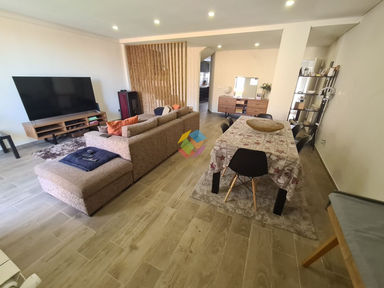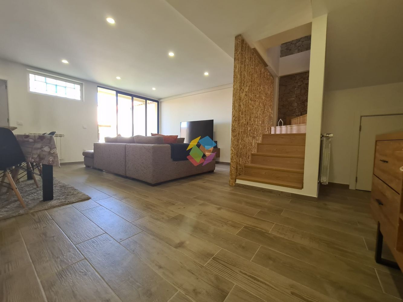 Moradia V3 em Santa Maria da Feira..Área Útil: 160 m²..Área Bruta: 238 m²..PREÇO: 206.000,00 EUROS..Moradia V3 com 160m², composta por dois pisos:..No Rés-do-chão:.Hall de entrada.Ampla sala com acesso à parte exterior.Cozinha equipada nova.WC de serviço..No primeiro andar:.Dois quartos com roupeiro.Wc completo de apoio aos quartos.Suite com roupeiro, wc completo e varanda..Espaço exterior, distribuídos por logradouro com zona de churrasqueira, lavandaria, acesso automóvel para garagem...Características importantes:.Tetos falsos,.Vidros duplos,.Aquecimento central,.Salamandra a pellets.Moradia com acabamentos modernos.Acabamento em pedra natural.Chão em flutuante.Garagem fechada com portão automático.Roupeiros Embutidos..Imóvel com excelente exposição solar...Situado a escassos minutos da entrada da A1 e da A29, zonas comerciais, industriais e de lazer, escolas, comércio e serviços diversos e do centro...Marque já a sua visita...AMI 10354