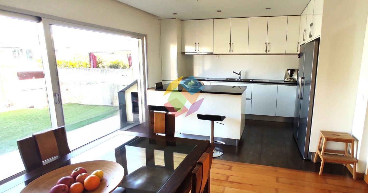 Magnífica Moradia T4 de luxo em Stª. Maria da Feira, localizada em zona habitacional calma e próxima dos acessos rodoviários, nomeadamente A29, dista aproximadamente 3,5 Km de Stª. Maria da Feira e a 7,5 Km de Ovar...O Imóvel e composto por 2 pisos (rés-do-chão e 1º andar):..Rés-do-Chão..Neste piso temos, hall de entrada, cozinha equipada e copa com acesso direto ao jardim frontal, sala ampla com recuperador de calor \"Open Space\" e acesso direto ao logradouro/jardim, casa de banho de serviço, quarto (escritório), arrumos, garagem para 2 carros, lavandaria, zona de logradouro e jardim, numa zona mais elevada temos uma pequena área de terreno com diversas árvores de fruto...1º Andar..Subindo até a zona privativa, temos 3 quartos todos eles suite e com acesso direto a varanda e 3 casas de banho completas (todas elas das suites)...Em destaque a excelente exposição solar, qualidade de construção e materiais construção de qualidade superior, áreas interiores e exteriores generosas, eficiência energética e a localização privilegiada. ..A nível de equipamentos temos, tetos falsos com sancas, iluminação embutida, portões exteriores automáticos, recuperador de calor, aquecimento central, estores eléctricos, janelas duplas, ar-condicionado, sistema de alarme, painéis solares, cozinha equipada com electrodomésticos e poço, poderá comprovar tudo isto visitando este SONHO de Moradia...Não perca esta Oportunidade, o seu SONHO esta aqui, venha visitar !!! ..Tratamos de todo o processo de financiamento e acompanhamos o cliente até ao ato da escritura...Seja qual for a sua necessidade no mercado imobiliário, a Cubic Imobiliária está aqui para ajudar, permita-nos ser seu parceiro confiável na realização dos seus objetivos imobiliários...Para mais informações, estaremos sempre ao seu inteiro dispor...Marque a sua visita!..AMI 10354