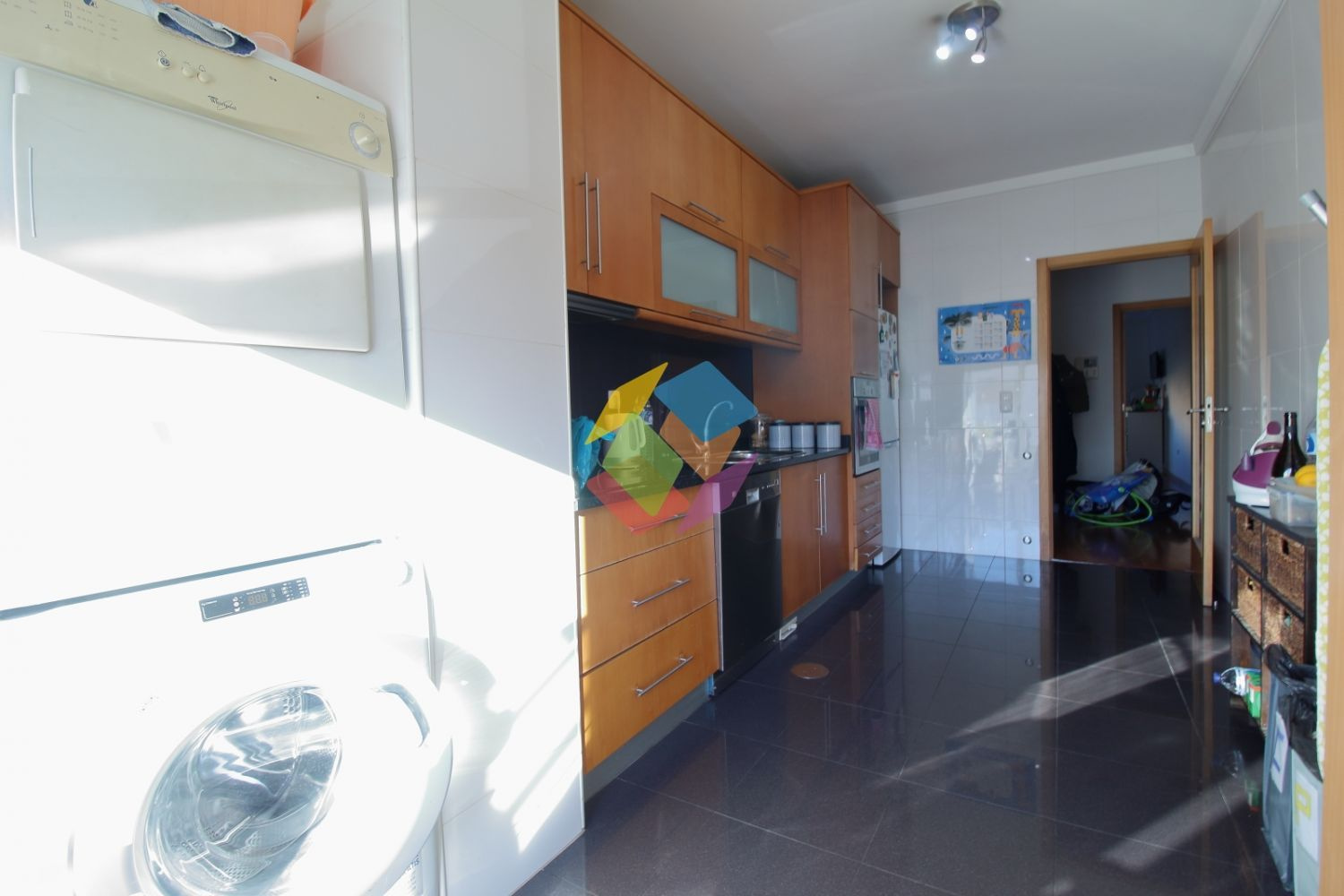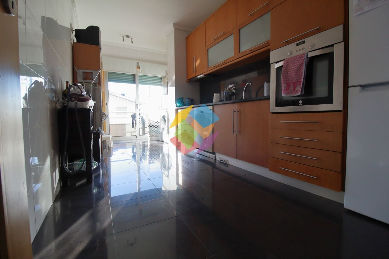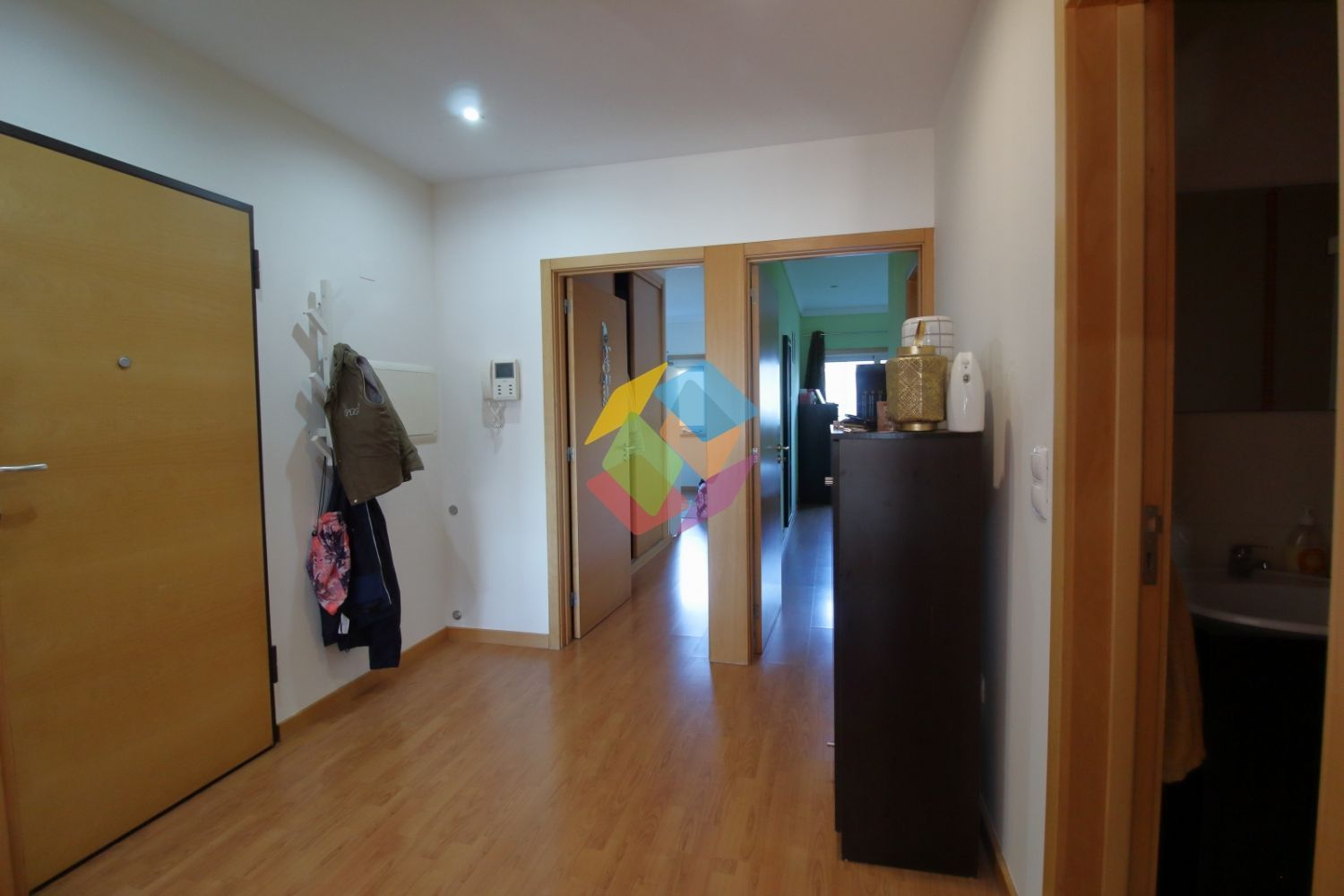 Apartamento T2 em Nogueira da Regedoura com excelentes acessos, com entrada para A1 e CREP..Imóvel constituído por cozinha em faia com eletrodomésticos embutidos, zona de lavandaria, hall de entrada amplo, sala com lareira com recuperador de calor e com varanda comum entre sala e cozinha, dois quartos com roupeiros embutidos, sendo um deles suite com banheira de hidromassagem, casa de banho de acesso ao quarto e visitas com base de duche, garagem fechada para uma viatura...Exposição Solar Nascente e Poente...Imóvel com janelas duplas térmicas, flutuante, porta blindada, pré-instalação de radiadores, teto falso no Hall de entrada, luzes embutidas em led´s, aspiração central e intercomunicador...Apartamento no primeiro andar, prédio com elevador...Valor do Condomínio 39...Marque já a sua visita...Contate Isabel Tavares: 924 011 888..AMI 10354