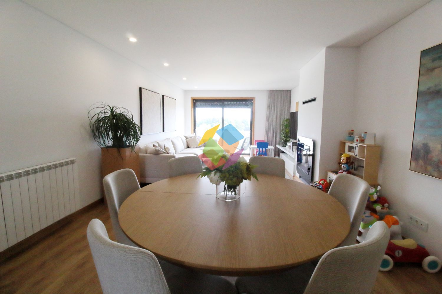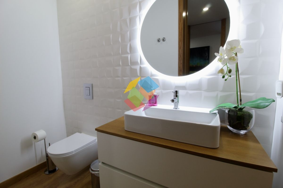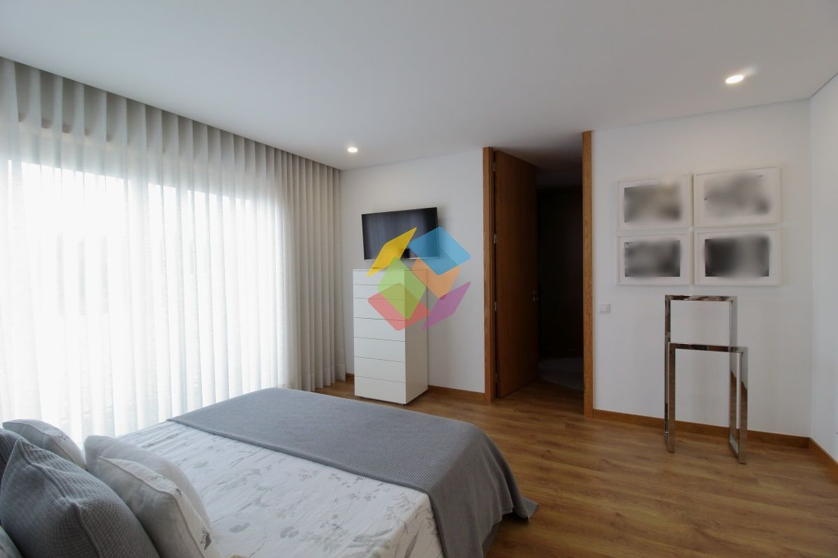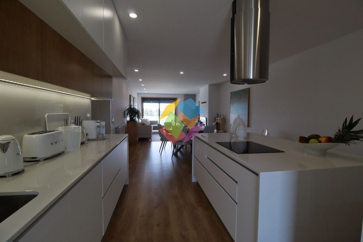 Apartamento T3 como Novo em Santa Maria da Feira todo mobilado...Imóvel com excelentes áreas, com varanda nas duas frentes, no último andar..Todas as divisões dispõe de luz direta à exceção da casa de banho de serviço e da casa de banho de apoio aos quartos...Garagem para duas viaturas com portão automático e sistema de vigilância...Edifício com elevador...Este apartamento está equipado com:.Sistema de Vigilância.Aquecimento Central.Recuperador a Pellets .Domótica via Wi-fi.Estores Térmicos e Elétricos e Cortinados Elétricos.Porta de entrada Blindada.Cozinha com ilha e tampo com pedra DEKTON, exaustor central, frigorífico estilo americano, forno, placa e micro-ondas marca TEKA, torneiras e equipamentos da SMEG.Carpintaria Tipo Faia ou Carvalho com portas interiores do chão até ao teto..Roupeiros Embutidos.Sanitários Suspensos.Tetos Falsos Com Luz Led.Painel Solar com depósito 300 Litros e esquentador de água .Tintas interiores brancos de primeira qualidade .Sistema elétrico certificado .Gás Canalizado.Esquentador Inteligente ...Marque já a sua visita...AMI 10354