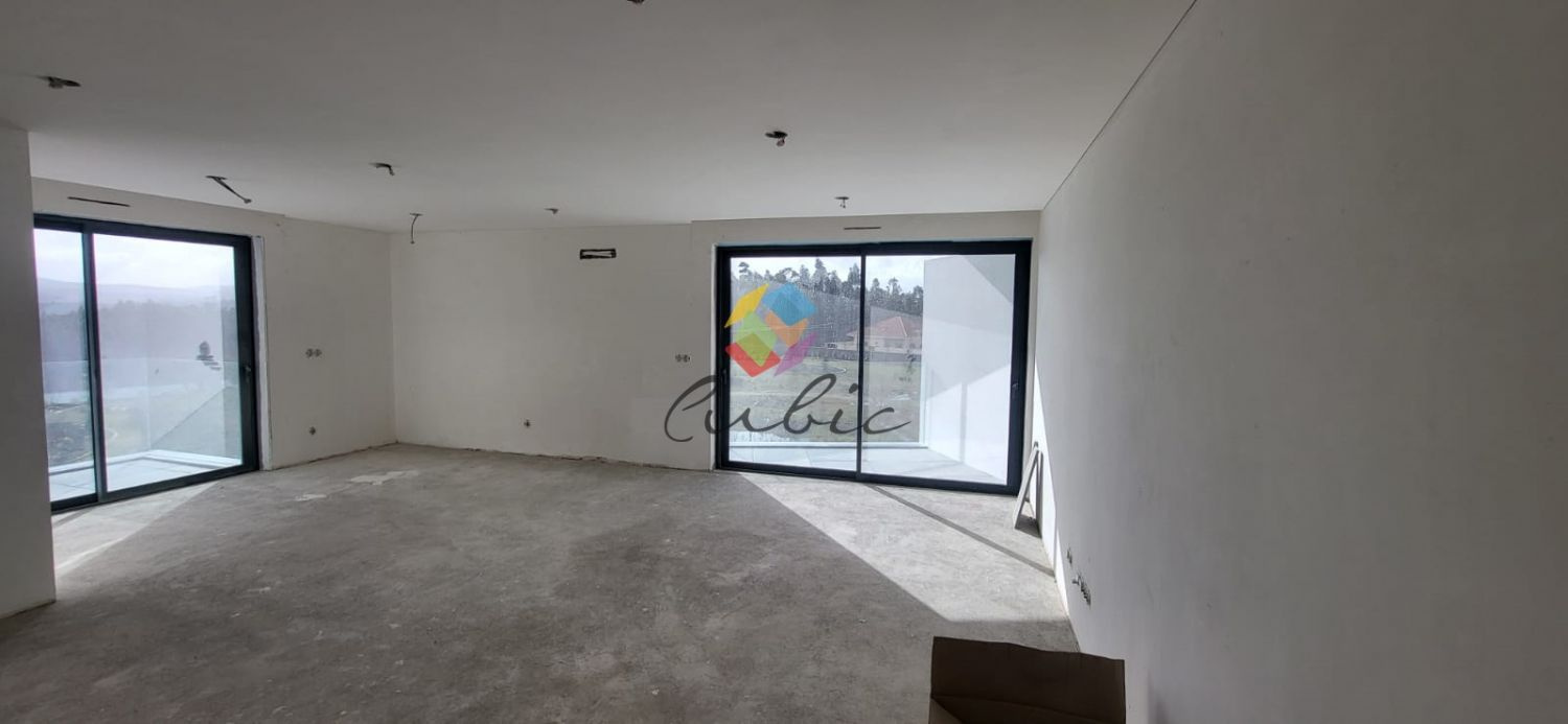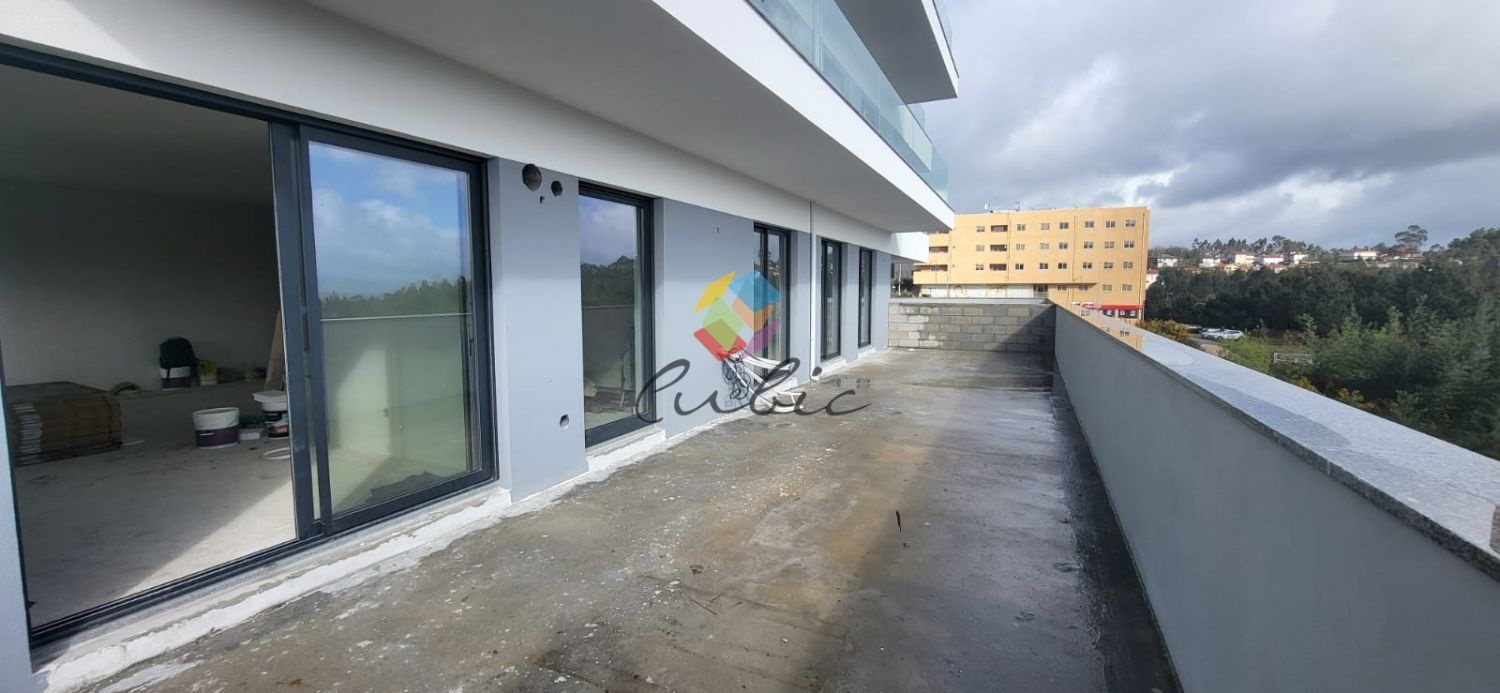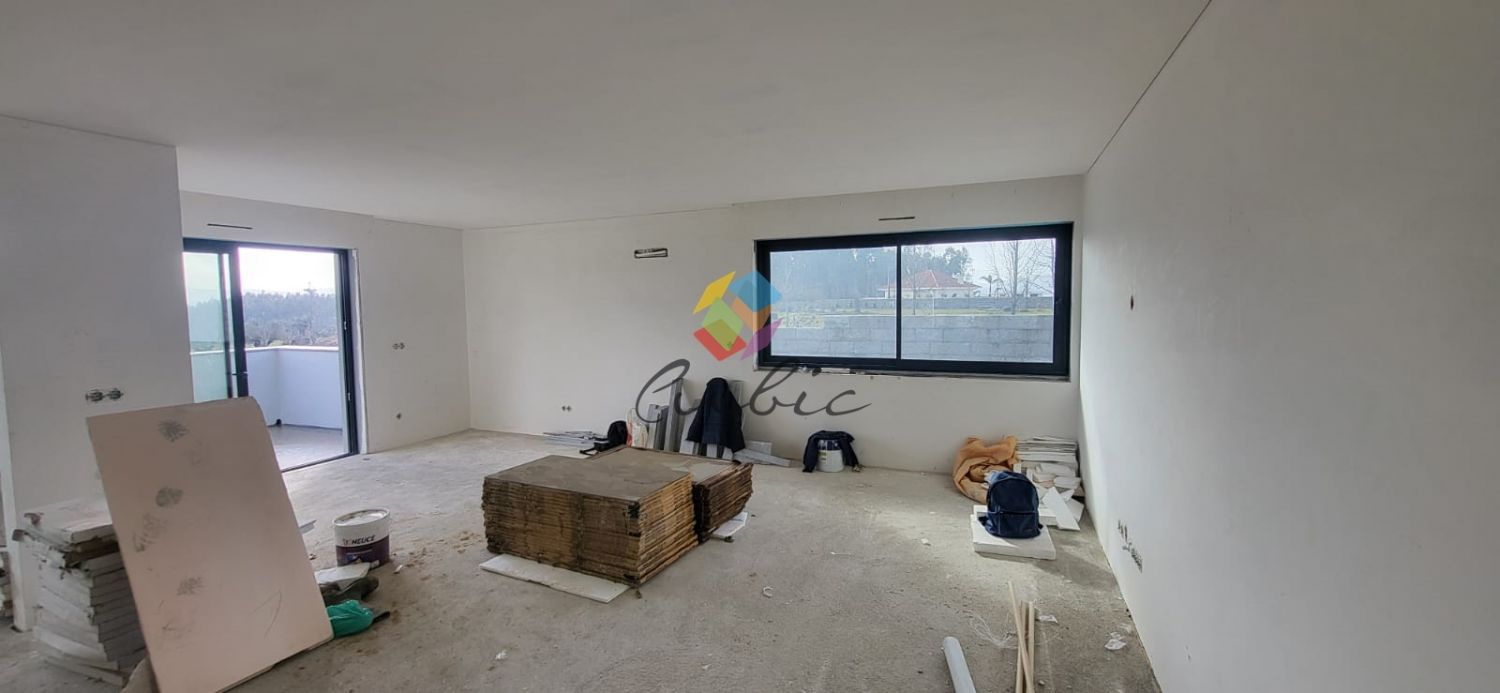 Exclusivos Apartamentos T3 em Canedo com Terraço..Único para venda Apartamento T3...PAVIMENTOS INTERIORES.Zonas Comuns do Edifício com revestimento de granito da região..Cozinha e Instalações Sanitárias com revestimento Cerâmico do tipo Cinca ou equivalente..Quartos, Sala de Jantar, Sala de Estar, Hall e distribuição com flutuante AC5 do tipo FINSA Findfloor Exitus Carvalho ou equivalente..Garagem com pavimento betão com acabamento atalochado...PAREDES INTERIORES.Instalações Sanitárias com revestimento Cerâmico do tipo Cinca ou equivalente..Restantes paredes de apartamentos com acabamento estanhados com revestimento de pintura do tipo CIN VinylMatt..Garagem com acabamento areado com revestimento de pintura do tipo CIN VinylMat...TECTOS INTERIORES.Tectos em gesso cartonado, incluindo placas hidrófugas nas zonas húmidas (instalações sanitárias e cozinha), com revestimento de pintura do tipo CIN. Inclui sanefas para cortinados.. .SERRALHARIAS.Caixilharia com ruptura térmica e vidro duplo do tipo RTC e RT60 da Alesil ou equivalente, com 2.40m de altura máxima..Estores térmicos à cor da caixilharia..Garagens fechadas Individuais com portões seccionados, sendo os da sub-cave e o portão comum da cave motorizados...CARPINTARIAS.Portas interiores de abrir ou de correr de 2.10m de altura máxima, lacadas à cor branca..Rodapés mdf lacado branco..Roupeiros lacados em branco..Móveis de cozinha termolaminados à cor branco, com tampo do tipo SILESTONE GRUPO I, cor branco, pia lava-louça do tipo TEKA, incluindo torneira do tipo ROCA, forno, micro-ondas, frigorífico combinado e placa da marca BEKO ou equivalente...INSTALAÇÕES ESPECIAIS.Fornecimento de todos os tubos e caixas necessários, e todos os quadros elétricos com circuitos necessários. O material da aparelhagem será da marca EFAPEL creme ou branco..Inclui focos LED embutidos, mas exclui-se candeeiros pendentes sala jantar..Louças Sanitárias suspensas da marca tipo ROCA ou SLine e torneiras tipo ROCA ou equivalente...Inclui também:.Pré-instalação de ar-condicionado...Não perca esta Oportunidade...AMI 10354