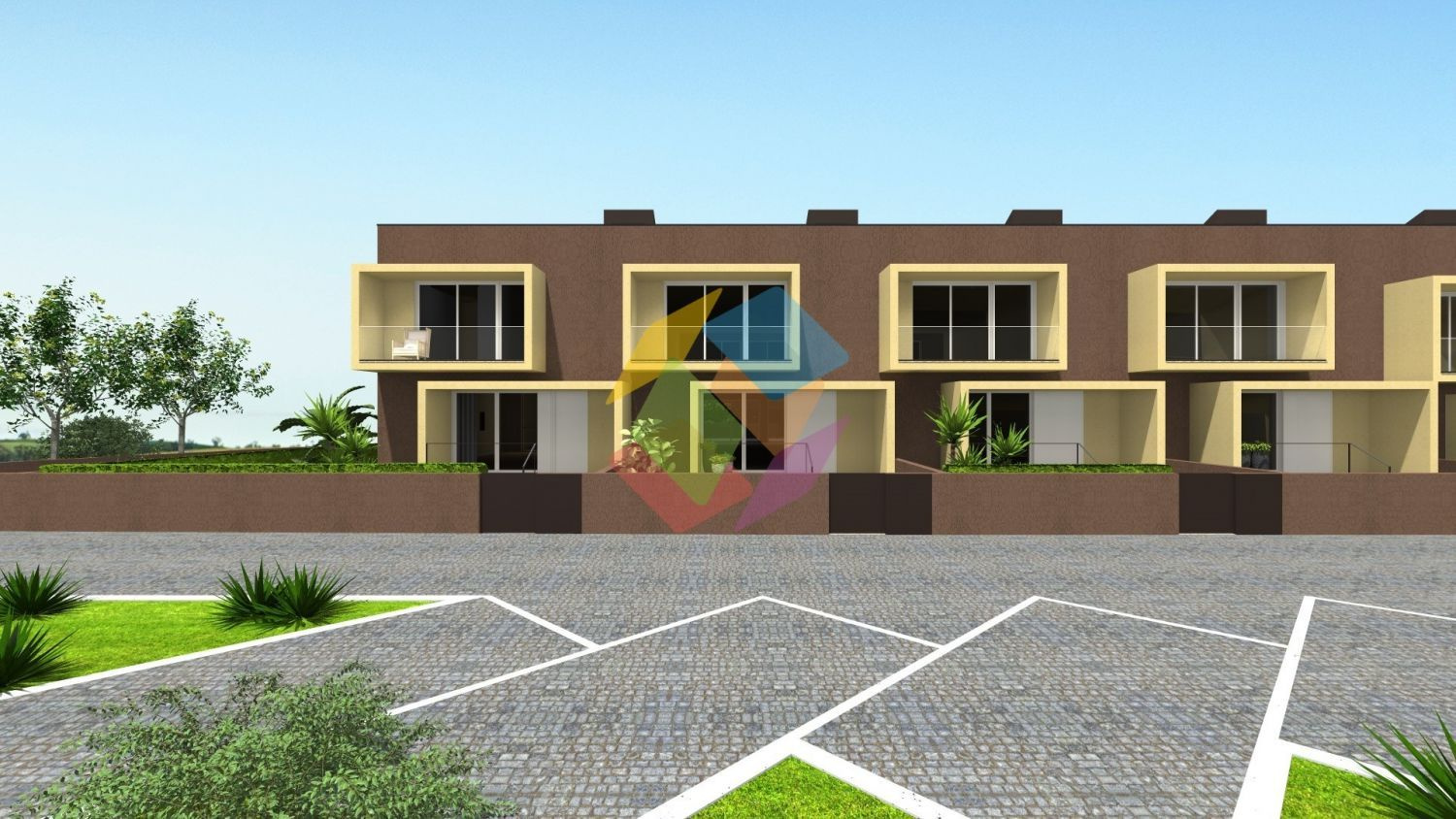 Casas do Riacho..Casas: 03 e 06,..Moradia T3 em banda inserida em condomínio fechado com piscina, localizadas em Ovar...O Imóvel é constituído por 3 pisos (cave, rés-do-chão e 1º piso):..Cave:.Salão amplo com áreas generosas, arrumos e garagem fechada...Rés-do-Chão.Temos o hall de entrada, sala ampla, cozinha em Openspace, casa de banho de serviço, lavandaria, tendo acesso direto ao terraço..No exterior concretamente na zona frontal do imóvel, temos uma zona ajardinada e uma zona de logradouro...1º Piso.Apresentam-se com 2 quartos com armários embutidos com acesso a uma varanda comum, casa de banho completa de apoio aos quartos, hall de distribuição equipado com excelente armário de apoio, e por último uma magnífica suite com closet e varanda..Nas traseiras da moradia temos um extraordinário espaço verde com piscina ao ar livre, onde terá igualmente um parque infantil para que possa usufruir de excelentes momentos com os seu familiares e amigos...CARACTERÍSTICAS DE CONSTRUÇÃO/EQUIPAMENTOS:.- Parte Estrutural: .Sistema porticado constituído por pilares e lajes aligeiradas. .- Paredes do Edifício: .Em paredes exteriores: Alvenaria dupla de tijolo, incluindo isolamento térmico e .acústico pelo exterior com sistema ETICS (External Thermal Insulation Composite .System) vulgarmente conhecido por Capoto. .Em paredes interiores: Divisórias de apartamentos alvenaria dupla, incluindo .isolamento térmico e acústico. No interior dos apartamentos, alvenaria simples. .- Caixilharia: .Janelas e portas oscilo-batentes com vidro duplo. .- Quartos, hall, sala e corredores: .Em paredes: Estuque natural projetado do tipo SERAL, pintado a tinta plástica .com cor a definir. .Em pavimentos: Piso flutuante laminado composto por réguas de padrões de .madeira natural. .- Quartos de Banho e cozinhas: .Em paredes: Estuque natural projetado do tipo SERAL, pintado a tinta plástica .com cor a definir e alguns apontamentos cerâmicos. .Em pavimentos: Material cerâmico .- Móveis de cozinha: .Executadas em módulos de madeira laminada com portas em termo-laminado. .- Carpintarias: .Serão executadas em madeira de Faia ou carvalho envernizadas à cor natural. .- Equipamentos e instalações: .- Electrodomésticos: Forno, Placa, Máquina de lavar louça e combinado .- Pré-instalação de ar-condicionado/ pré-instalação de aquecimento central .- Instalação de Bomba de calor para águas sanitárias. .- Estores termo-laminados elétricos .- Sistema para TV .- Sistema de Video-porteiro...As Imagens 3D apresentadas são meramente ilustrativas...Não procure mais, marque visita, o seu SONHO está aqui !!!..AMI 10354