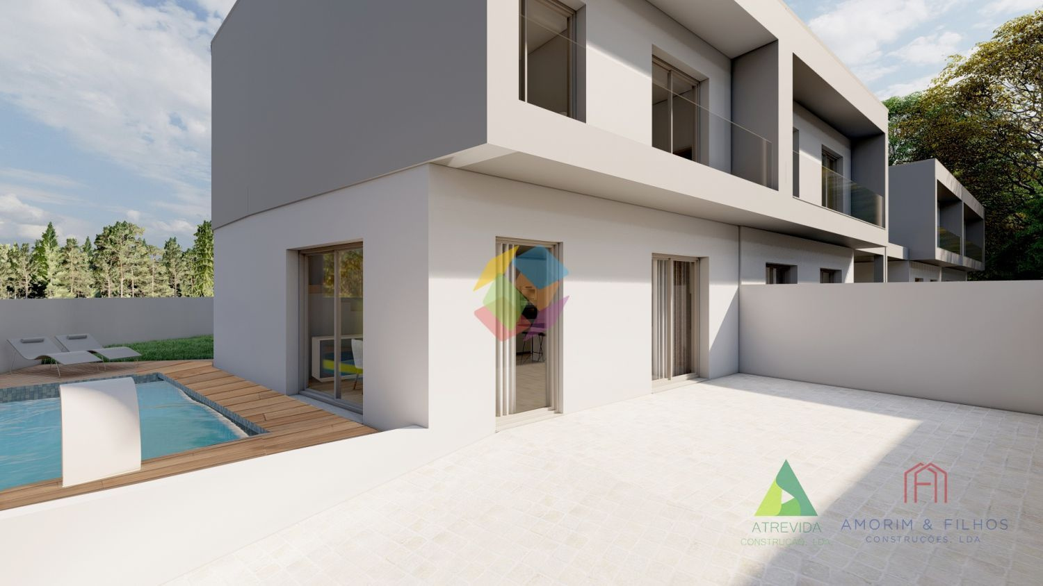 Moradia T3 + 1 Geminada em Argoncilhe (Nova) Em Construção Fica localizada em zona habitacional calma, com diversos tipos de comércio e serviços, a 1 minuto das escolas primária e secundária, com bons acessos rodoviários, a 2 minutos do acesso da A1 e a 5 minutos de Vila Nova de Gaia...Moradia constituída por 2 pisos ( Rés-do-chão e 1º piso):..Rés-do Chão:.Composto por uma cozinha mobilada e equipada com eletrodomésticos de qualidade, lavandaria, sala com possibilidade de Open Space e zona para sala de jantar e casa de banho de serviço e garagem para 2 carros..1º Piso:.Neste piso encontramos três quartos com roupeiros embutidos, sendo um deles suite, cada de banho completa de apoio aos outros dois quartos...No exterior temos um logradouro e zona de jardim na zona frontal, temos ainda Zona de lazer e convívio com jardim da parte detrás da moradia...A destacar a localização privilegiada, perto do centros abrangentes e com bons acessos, construção moderna, áreas generosas, com acabamentos de primeira qualidade, não prescindido de zonas de privacidade e lazer, fazem deste imóvel um imóvel único para quem privilegia a qualidade de vida, conforto, segurança e toda a comodidade que a moradia pode oferecer...A moradia encontra-se com a obra finalizada em 2023...Uma vez que se encontra em construção existe a possibilidade de acrescer uma divisão para escritório no rés-do-chão (preço sob consulta)...MAPA DE ACABAMENTOS..COBERTURA.Cobertura plana com isolamento ROOFMATE 80mm devidamente impermeabilizada e coberta a godo, com rufos e cabeças de muretes em chapa lacada, cor a definir...PAVIMENTOS INTERIORES.Pavimento interiores com revestimento cerâmico até 15/m2 ou revestimento flutuante AC5, e escadaria com forra em madeira tola ou idêntico...PAVIMENTOS EXTERIORES.Pavimentos exteriores de varandas com revestimento cerâmico até 20/m2 e restantes pisos de acesso em micro-cubo de granito da região azul/cinza...PAREDES INTERIORES.Paredes interiores desengrossadas e estanhadas com revestimento de pintura do tipo CIN VinylMatt Casas de banho e faixa entre moveis será desengrossada e com revestimento cerâmico até 15/m2...PAREDES EXTERIORES.Sistema compósito de isolamento térmico, ETICS de 60mm no piso inferior e 80mm no piso superior com revestimento decorativo à cor branco e 3006 (cinza).Restantes paredes sem requisitos térmicos recebem aplicação de acabamento em barramento armado...TECTOS INTERIORES.Tetos falsos em gesso cartonado em todos os compartimentos interiores, incluindo placas hidrófugas nas zonas húmidas (banho e cozinha). Inclui sanefas para cortinados mas exclui sancas de luz indireta..Todos o tetos serão revestimentos a tinta do tipo CIN...SERRALHARIAS.Portão exterior automóvel e portão exterior normal de saida pedonal com estrutura tubular, revestido a chapa zincor 2mm, lacado..Caixilharia com rutura térmica, vidro duplo (conforme projeto térmico) do tipo RTC e RT70 da Alesil ? cor acetinado natural..Soleiras em granito da região cinza antas..Estores térmicos à cor da caixilharia..Todos os vãos de caixilharia terão a altura total do pé direito interior até 2.15m..CARPINTARIAS.Portas interiores de abrir ou de correr com dimensão total do pé-direito de 2.15m, folheado a tola..Apainelados, rodapés e roupeiros folheados a tola (inclui roupeiros em todos os quartos exceto no escritório do piso inferior).Móveis de cozinha termo laminados com tampo em silestone do grupo I, pia lava-louça teka encastrada na pedra com frisos na mesma, incluindo torneira, forno, micro, frigorifico e placa da marca beko num valor máximo de 5500..Esta também equipada com:.- Pré-instalação de sistema de vigilância.- Pré-instalação de sistema de alarme.- Pré-instalação de ar-condicionado (6 pontos).- Instalação de kit de 2 painéis com termo acumulador incorporado...Para mais informações sobre este ou outro imóvel, não hesite em entrar em contacto...Marque já visita, oportunidades destas não existem sempre...AMI 10354