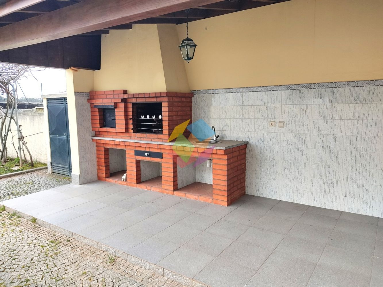 Excelente moradia geminada de tipologia T3, em Stª Maria da Feira, localizada em zona habitacional calma, junto de diverso comércio e serviços, com bons acessos rodoviários e próxima dos acessos A1 e A29...O Imóvel e composto por 3 pisos (cave, rés-do-chão e 1º piso):..Cave: .É composta por salão/garagem tudo amplo com capacidade para 3/4 carros, casa de banho e quarto/escritório com luz direta e acesso privado para o exterior, onde se encontra um telheiro equipado com uma excelente churrasqueira com forno a lenha e ainda uma zona de logradouro e de jardim com algumas árvores...Rés-do-Chão:.Temos o hall de entrada e hall de acesso as escadarias, sala ampla com acesso direto a varanda, cozinha equipada (placa, forno, exaustor, micro-ondas) e copa com recuperador de calor e acesso direto a varanda, casa de banho completa, no exterior temos ainda um jardim na zona frontal...Piso 1º:.Neste piso temos um hall de distribuição de quartos com luz direta, 1 suite com roupeiro embutido e varanda, 2 quartos com roupeiros embutidos e um deles com acesso a varanda e 2 casas de banho completas, uma delas da suite e outra de apoio aos quartos. ..O Imóvel possuí áreas bastante generosas, muita luminosidade e em muito bom estado de conservação, encontra-se equipada com recuperador de calor, portões automáticos, estores elétricos, vídeo porteiro e aquecimento central...O que espera!!!..Marque já a sua visita.. .AMI 10354