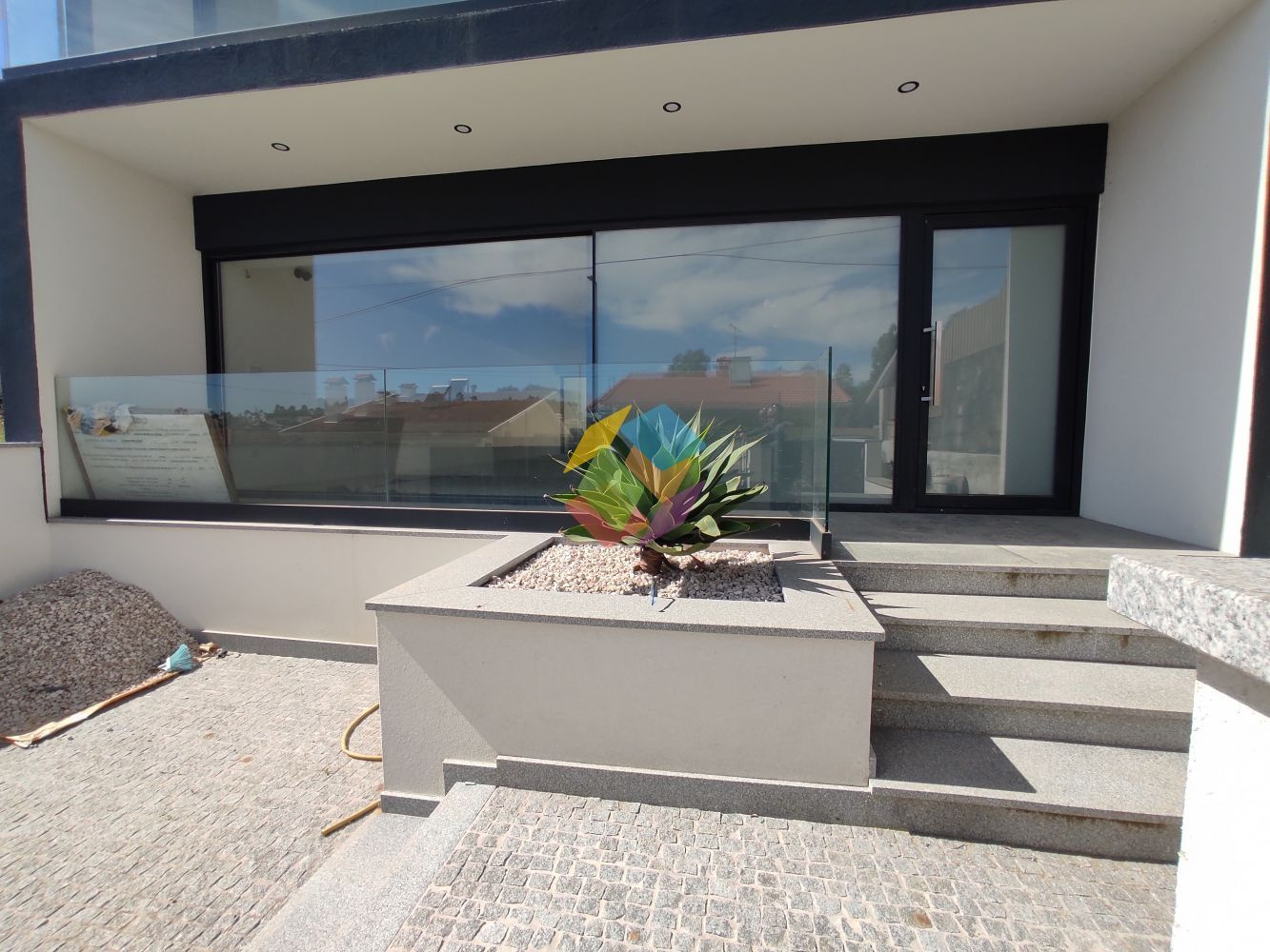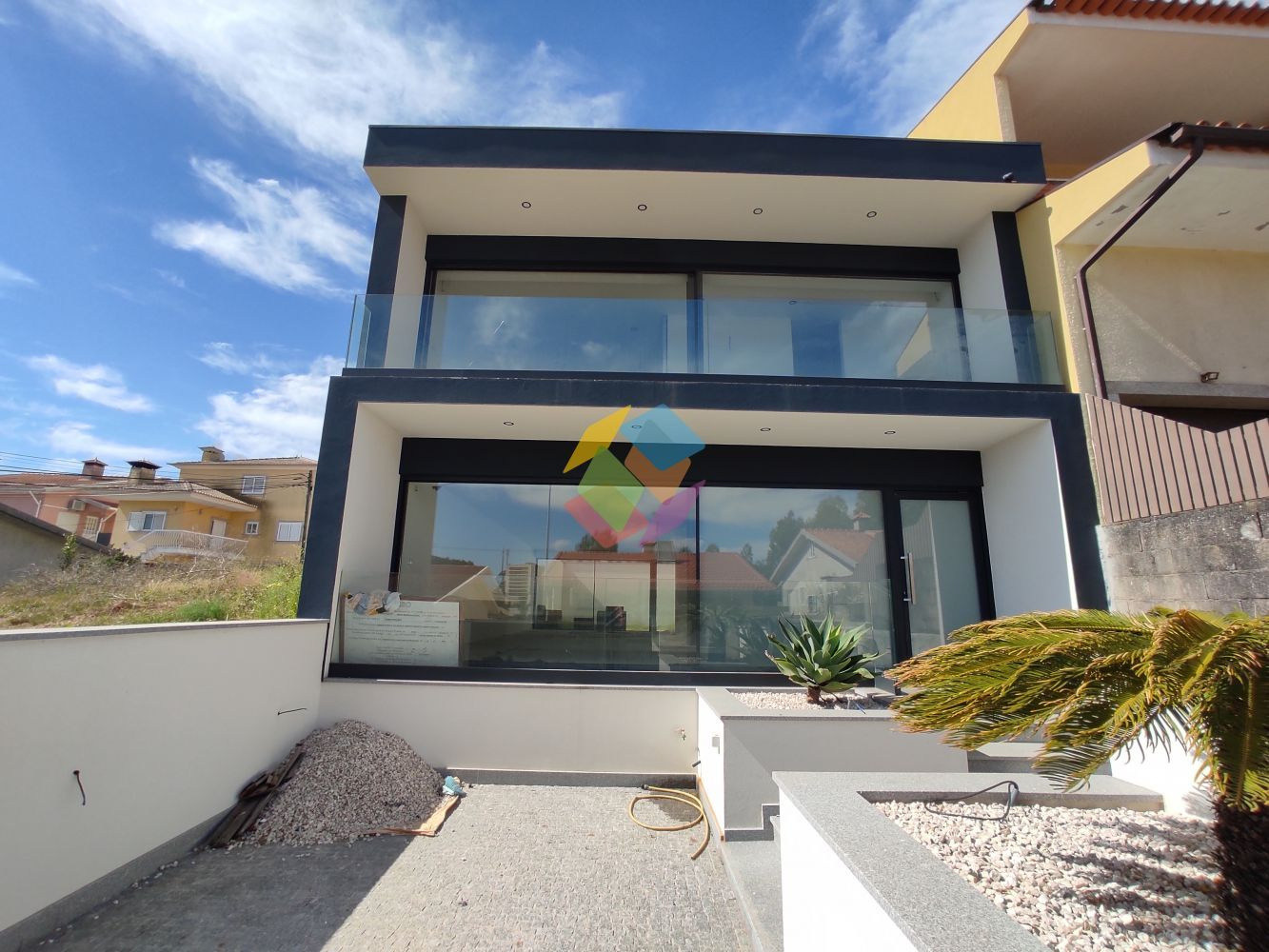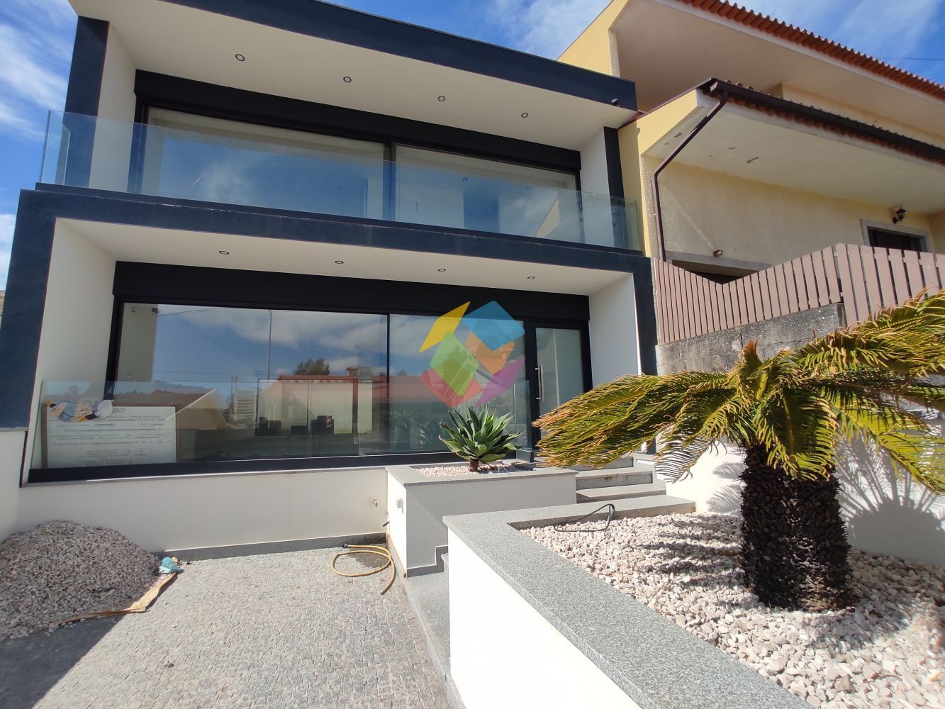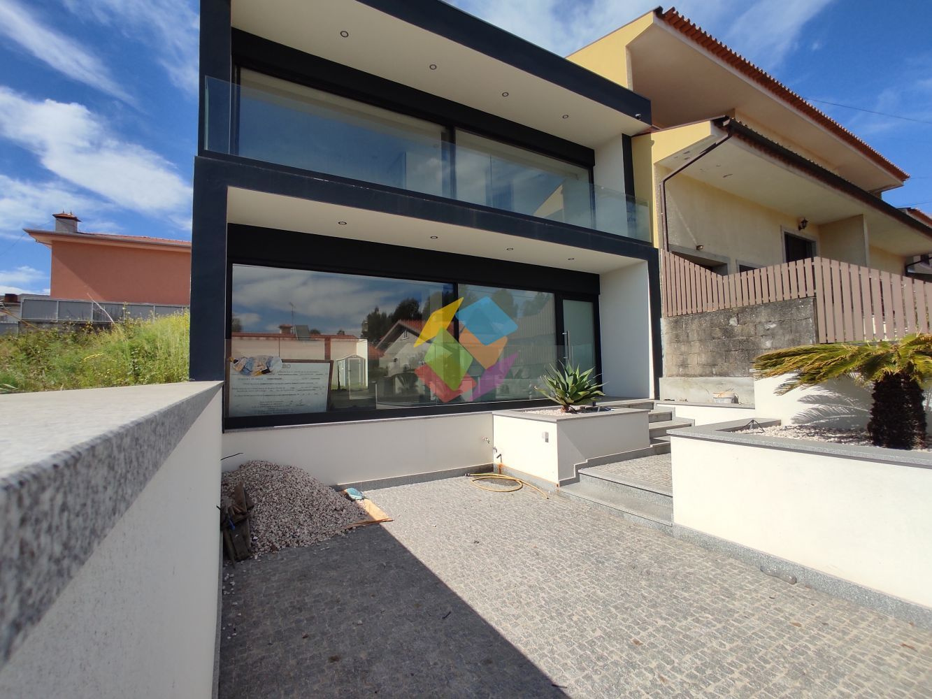 Excelente Moradia T3 na Quinta do Areeiro em São João de Vêr, localizada em zona habitacional calma, com bons acessos e a 1 minuto da EN1...O Imóvel é constituído por 2 pisos (Rés-do-Chão e 1º Piso):.Rés-do-chão:.- Hall de entrada com armários de apoio para arrumação,.- Sala e cozinha em Open Space com acesso direto logradouro frontal e jardim nas traseiras,.- Casa de banho de serviço,.- Na zona frontal do imóvel possuí zona de jardim e zona de parqueamento para 1 viatura, nas traseiras uma zona ampla com logradouro e uma zona em relva natural, ..1º Andar:.- Hall de distribuição de quartos,.- Suite com armários embutidos, varanda com excelentes vistas e casa de banho com base de chuveiro,.- 2 Quartos com acesso a varanda,.- Casa de banho completa,..Características:.O Imóvel duas frentes, exposição solar Norte/Sul, possuí muita luminosidade natural no interior, dado estar equipada com portas de enorme dimensão,.Equipada com:.- Pré-instalação para todos os aparelhos de cozinha,.- Pré-instalação para Ilha,. -Vidros duplos de 14mm+8mm,.- Caixilharia com corte térmico,.- Escadaria flutuante forrada a madeira natural,.- Portas interiores deslizantes a correr para dentro paredes feitas por medida e ate ao teto,.- Paredes interiores com placas duplas de pladur, e isolamento de la de vidro,.- Iluminação led embutida,.- Pré-instalação de blackout elétrico,.- Pavimento Flutuante AC5 antifúngico em toda a casa,.-Vídeo Porteiro,.-Videovigilância com 4 câmaras e ligação online,.- Pré-instalação para caldeira,.- Pré-instalação de aquecimento por convecção,.- Pré-instalação de domótica,.Exterior:.- Iluminação exterior,.- Logradouro para uma viatura,.- Pré-instalação de ponto elétrico para carregador automóvel,.- Pavimento em calçada de granito,.- Paredes exteriores e muros com capoto e marmoran à cor,.- Varandas e floreiras revestidas com tela, .- Jardim com relva natural e deque cerâmico,.- Pré-instalação de portões elétricos,. - Pré-instalação para painéis solares. .- Muros com projetores de luz em led,.- Possibilidade de colocação da cozinha com acréscimo de 15 000 ,..AMI 10354