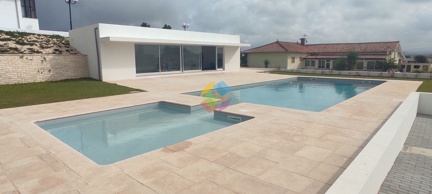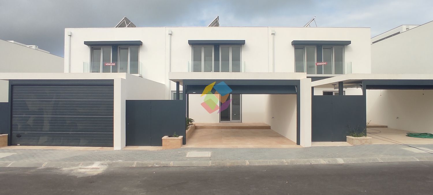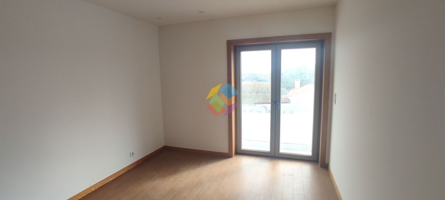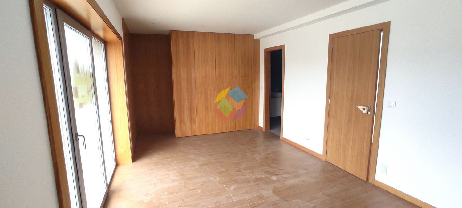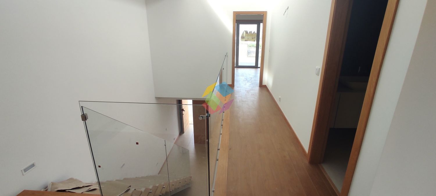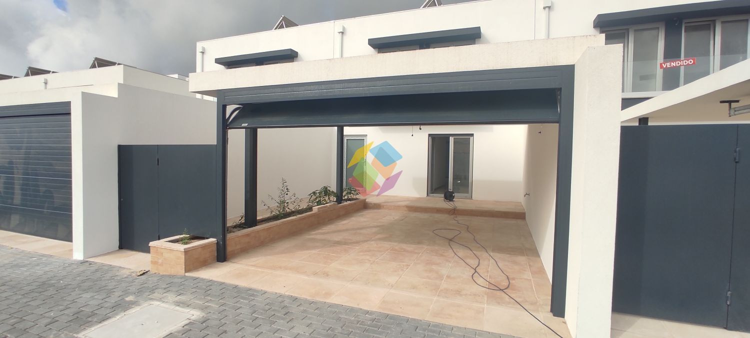 Moradias T3 em Banda inseridas no Empreendimento \"Villasria\", num condomínio fechado c/piscina em Torrão do Lameiro, a poucos minutos do centro de Ovar (7,2Km), Stª. Mara da Feira (17,6Km) e da Praia do Furadouro (6,7Km)...No exterior temos o acesso principal ao condomínio, zonas de parqueamento e diversas zonas de jardim, piscina e um excelente salão de festas, tudo isto para utilização comum de todos os moradores do condomínio...O Imóvel possuí 2 pisos (rés do chão e 1º piso):..Rés do Chão..Sala ampla com acesso direto ao jardim frontal, cozinha mobilada e equipada com placa/forno/exaustor/micro-ondas e frigorífico da marca TEKA e com acesso ao pátio das traseiras/garagem, casa de banho de serviço completa e zona com armário para arrumação...1º Piso..Temos 2 quartos com armários embutidos e com acesso a uma varanda comum, casa de banho completa de apoio aos quartos, hall de distribuição com excelente luminosidade natural no interior e uma suite com acesso a varanda...Esta Equipado com:.- Portões automáticos de acesso ao condomínio e da garagem,.- Aspiração central,.- Tetos falsos com iluminação embutida,.- Bomba de calor para aquecimento das águas,.- Painel solar,.- Louças suspensas,.- Carpintaria em Sucupira ou Carvalho francês,.- Pré-instalação de ar condicionado,.- Vídeo porteiro,.- Estores elétricos de rutura térmica,.- Janelas oscilobatentes e com vidros duplo,.- Portões de acesso e portão da garagem automatizados,.- Pavimento em cerâmico no piso rés/chão,.- Pavimento flutuante exclusivamente no piso superior à excepção das casas de banho,..O melhor de todos os mundos reunido neste pequeno paraíso, ria, mar e uma excelente cidade como é Ovar, não pense mais, aqui esta o seu futuro SONHO...AMI 10354