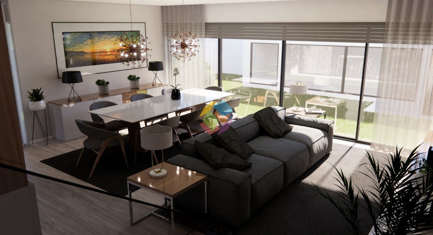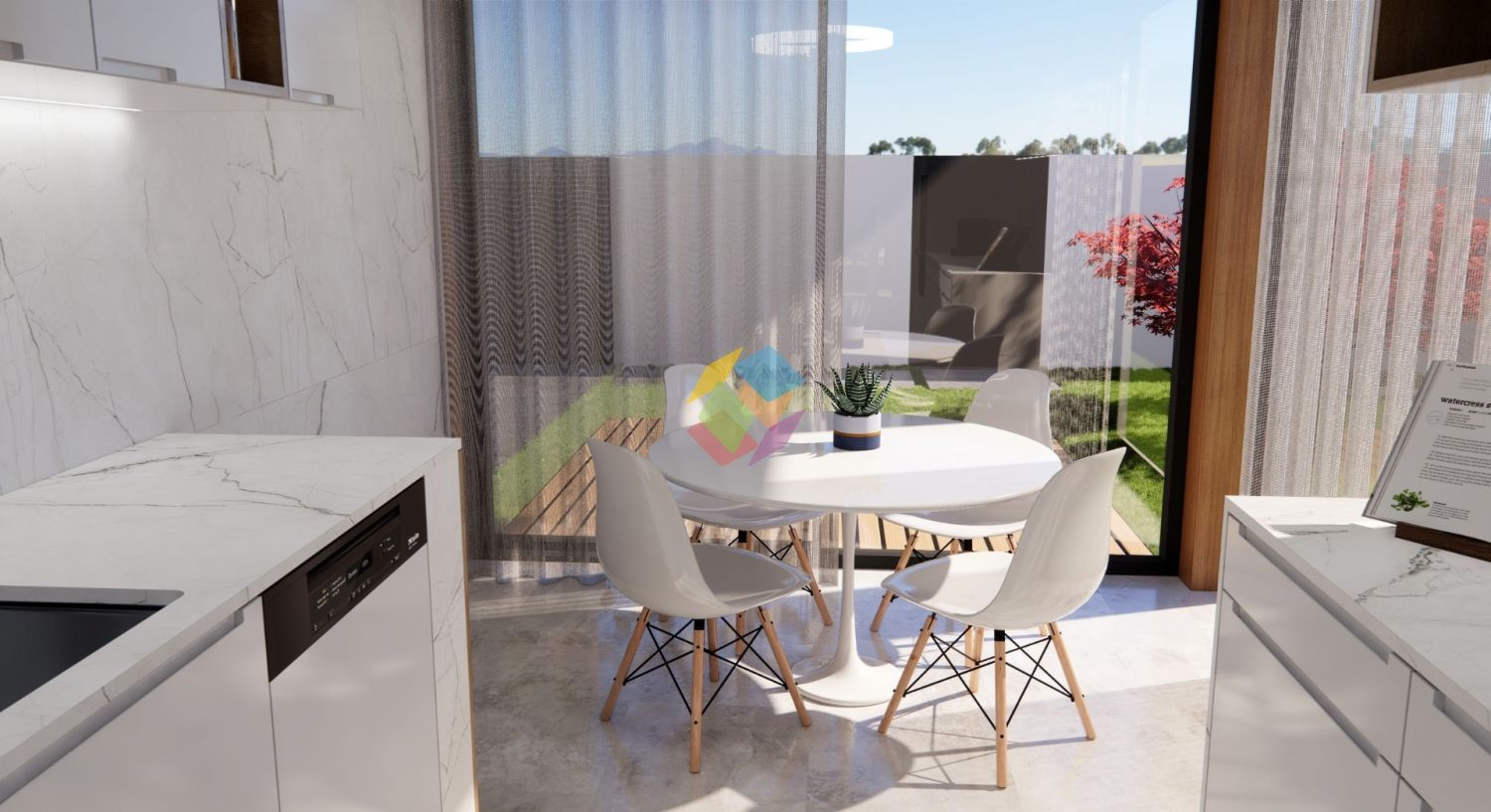 Moradia T3 (NOVA) geminada (3 frentes), inserida em Empreendimento ímpar de 14 lotes, localizada junto do Auditório de Stª. Maria de Lamas...Construção em ICF utilizando blocos em NEOPOR certificadas ECOBUILD+®..Todo o empreendimento é construído em betão armado, isolamento interior e exterior em EPS (Neopor), caixilharias em PVC A+, ventilação mecânica controlada em todas as divisões, bomba de calor de baixo consumo energético, áreas generosas, acabamentos de qualidade superior, excelentes acessos com design contemporâneo...Acompanhamento técnico pela CPassiva com assinatura reconhecida ECOBUILD+®...O Imóvel é composto por 2 pisos (rés-do-chão e 1º piso):..RÉS-DO-CHÃO.- Sala de estas e de jantar com acesso direto ao jardim/logradouro exterior,.- Cozinha equipada com electrodomésticos BOSCH, com acesso direto ao exterior,.- Casa de banho de serviço,.- Parquemento para 2 automóveis,..1º Piso:.- 1 master suite com closet e terraço provado,.- 2 quartos com roupeiros embutidos e com acesso ao terraço comum,.- Escritório/Sala de estar,.- Casa de banho completo de apoio aos 2 quartos,..Características / Equipamentos:.Alvenaria em betão armada, com uma construção maciça e entanque,.Isolamento em EPS,.Supressão de Pontes Térmicas.Caixilharias em PVC de alta eficiência térmica,.Ventilação Mecânica Controlada, duplo fluxo e bomba de calor AQS (Aquecimento de águas sanitárias),.Sistema de construção com alta eficiência energética, garantia de uma casa confortável graças à temperatura média e homogênea durante todas as estações do ano..Casa saudável. A qualidade de um ar saudável, sem humidade (sem risco de mofo) e sem qualquer composto orgânico volátil (VOC)..Construção sustentável e ecológica.Radiadores elétricos para toalhas,.Controle de acessos, vídeo porteiro WiFi, pré-instalação de alarme e automação de portões e persianas..Cozinha toda equipada com eletrodomésticos BOSCH ou outra marca equivalente.Moveis de casa de banho,.Portas interiores em Painel DE COENE.Roupeiros embutidos com acessórios incluídos,.Pavimento de alta qualidade em Vinil, flutuante e/ou cerâmicos.Terraços com pavimento cerâmico ou outro,..Existe a possibilidade na escolha dos matériais e acabamentos,...Categoria Energética: A..O que espera!!! o seu SONHO esta aqui, venha visitar...Marque já a sua visita!!!..AMI 10354