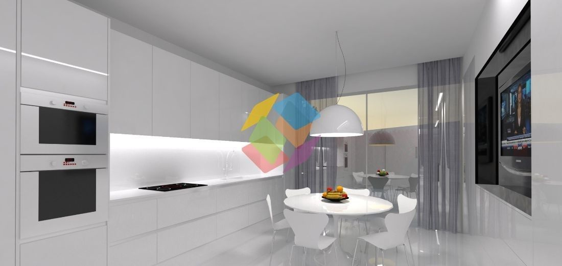 Moradia V3 de arquitectura moderna, geminada (3 Frentes), localizada em zona calma e junto dos principais acessos rodoviários. , ,A moradia é composta por hall de entrada amplo, cozinha com copa (equipada com electrodomésticos marca \"Siemens\") e acesso direito ao terraço, sala ampla com acesso a varanda, 3 quartos (um deles suite e com closet), na cave possuí lavandaria, alpendre, garagem para 2 carros e zona de jardim. , ,O imóvel esta equipado com painéis solares, portões automáticos, estores eléctricos, video porteiro, sanitários suspensos, aspiração central, ar condicionado, sistema de alarme completo e pré-instalação de video-vigilância. , ,De referir que existe a possibilidade da escolha de acabamentos. , ,Caso seja necessário poderá ver o mapa de acabamentos e as respectivas plantas. , ,Compre o seu sonho connosco e receba a oferta de cheque Prenda da Loja ElectroLow Cost . , ,AMI 10354
