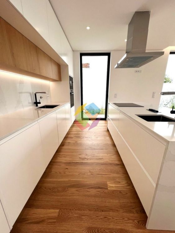 Projeto Paços Brandão Vilas (Ainda em Planta para Construção)..O Imóvel de 4 frentes esta inserido em lote com 710 m2 e área de construção de 228 m2, localizado em zona habitacional calma e com bons acessos rodoviários...A Moradia é composta por cozinha equipada com zona de refeições, sala de estar ampla, 2 quartos com roupeiros embutidos, 1 quarto suite com closet, 3 casas de banho (um de serviço, um completo e um da suite)...No exterior temos garagem para 2 carros, zonas de logradouro e zonas jardinadas para poder usufruir dos convívios com a sua família e amigos...A destacar a excelente exposição solar, Nascente, Sul e Poente, excelentes áreas e acabamentos de excelência...A moradia conta ainda com:..-Cozinha equipada (placa, forno, exaustor, micro-ondas, frigorífico, máquina de lavar louça) tudo da marcas \"Bosch/Siemens\",.-Bomba de calor,.-Pré-instalação de ar-condicionado em todas as divisões,.-Pré-instalação de aquecimento central,.-Pré-instalação de painéis solares e caldeira a gás,.-Recuperador de calor,.-Vídeo porteiro,.-Portas até ao teto,.-Teto falso com iluminação led embutida,.-Caixilharia de alumínio da Cortizo \"Cor Vision\" com corte térmico e vidro duplo emissivo e com controlo solar,.-Pavimento em madeira com acabamento em carvalho natural,.-Roupeiros embutidos lacados a branco,.-Estores elétricos e térmicos nos quartos,..Existe a possibilidade de construção de piscina sendo o valor acrescido ao valor do imóvel, assim como escolher e alterar alguns acabamentos...O que espera ligue para falar conosco, não pense 2 vezes!!!..Carlos Fonseca - 967 389 671..AMI 10354