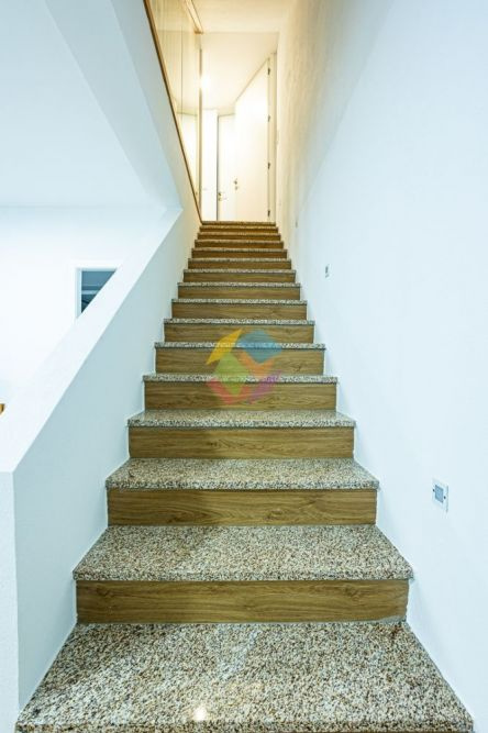 Moradia em Banda V3 em Mosteirô com três pisos..Cozinha Termo laminada em cores a definir com inclusão do forno, placa e exaustor e ilha no meio..Acabamentos com tijoleira de primeira, chão flutuante AC5, tetos falsos com iluminação LED..Vidros solares e caixilharia de alumínio com corte térmico..No piso superior, temos uma suite com closet privativo, dois quartos com roupeiros embutidos e casa de banho com banheira de hidromassagem:.Construção em sistema ETICS com 6 Cm, Tintas de primeira em cor claras. .Em zona calma, habitacional no entanto perto de centro e dos mais variados serviços e acessos...Moradia constituída por 3 pisos com acabamentos de alta qualidade...Marque já a sua visita...AMI 10354. .Fotos de acabamentos somente ilustrativas.