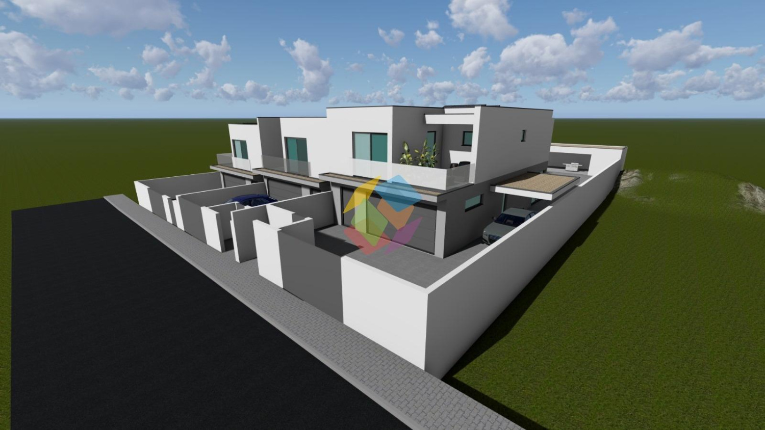 Moradias de Luxo em Santa Maria de Lamas T3 com piscina..Moradias modernas com tudo o que deseja..Descubra o novo padrão de excelência em habitação com estas deslumbrantes moradias T3 em Santa Maria de Lamas. Com dois andares e um design contemporâneo, estas residências foram projetadas para oferecer conforto e elegância em um ambiente familiar..Situadas numa área privilegiada. As moradias estão próximas a escolas, supermercado, bancos, centro da cidade facilitando a rotina familiar e proporcionando um acesso fácil a todos os serviços essenciais do seu dia a dia..Características das Moradias.Espaço Interno Amplo: Com uma planta generosa, cada moradia conta com três quartos, sendo um deles uma suíte sofisticada que garante privacidade e conforto..Terraço: Desfrute de vistas panorâmicas e iluminação natural em um terraço perfeito para momentos de relaxamento ou confraternização com amigos e família..Garagem espaçosa para duas viaturas, garantindo segurança e comodidade para os seus veículos..Arrumos com áreas bem planeadas, com espaço suficiente para manter sua casa organizada sendo os mesmos situados nas traseiras das casas, ótimos para poder desfrutar dos seus momentos familiares..O terreno generoso com piscina, permite ainda a criação de um jardim e área de lazer proporcionando o espaço ideal para atividades ao ar livre..Estas moradias são a combinação perfeita entre conforto, modernidade e localização. São de certo, a escolha ideal..Acabamentos.- Vidros Duplos com Corte Térmico,.- Chão em flutuante AC5 para todo o primeiro andar à exceção das Casas de Banho,.- Cerâmicas no Rés-do-Chão,.- Cozinha em Termolaminado brilhante com tampo em Silestone (Cores Claras) com inclusão do Forno, Placa e Exaustor,.- Ar Condicionado,.- Porta de Entrada Blindada,.- Portas Interiores até ao teto em faia,.- Estores Térmicos,.- Sanitários Suspensos marca Roca ou Valadares,.- Tetos Falsos com luz led,.- Bomba de Calor,.- Piscina,.- Isolamento tipo capoto,.- Passeios em Granitos...Agende uma visita e venha conhecer o seu novo lar.