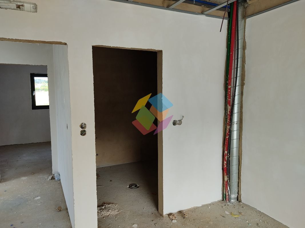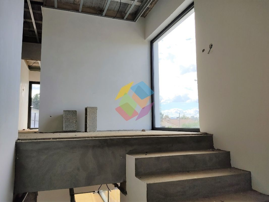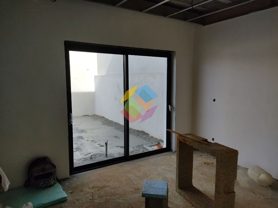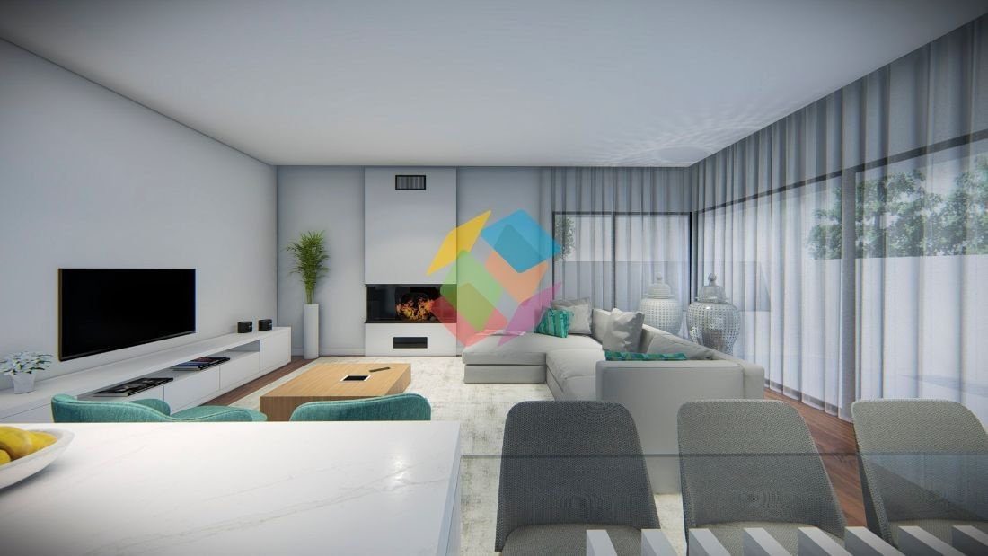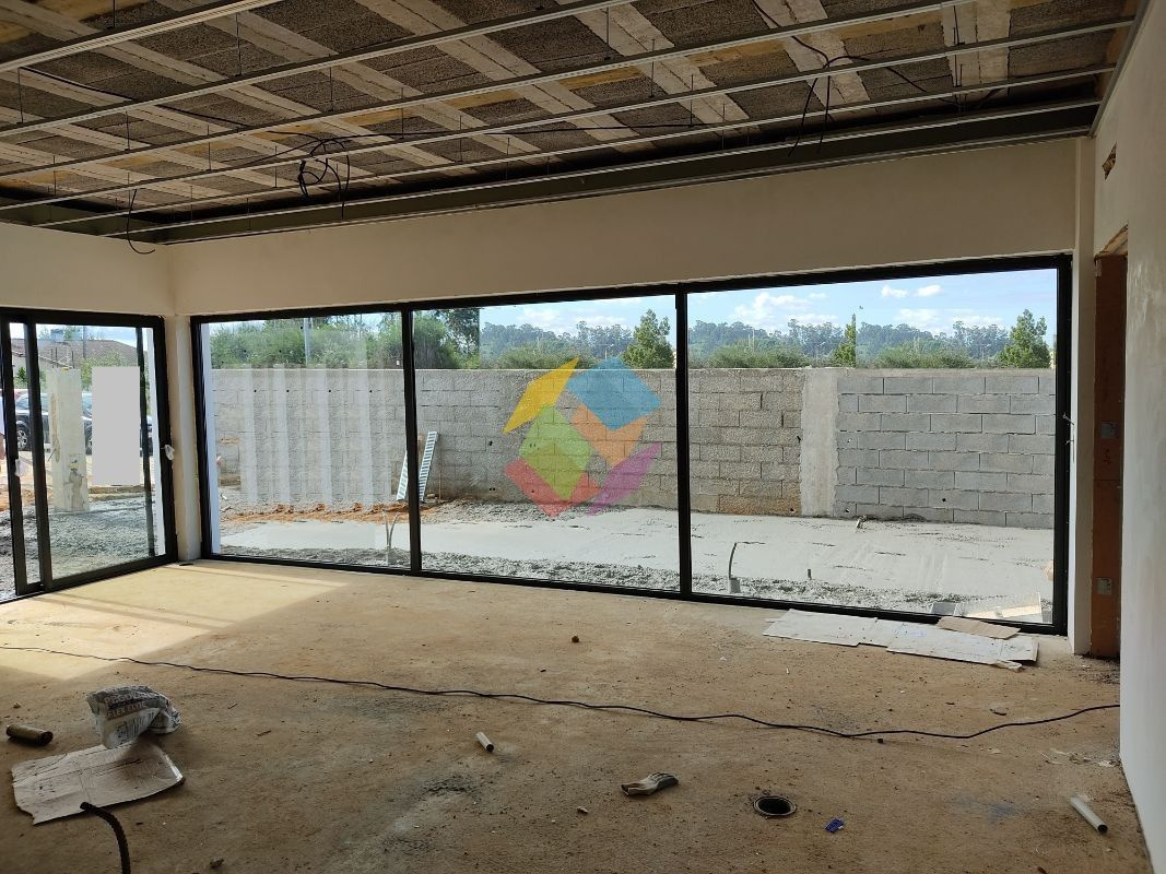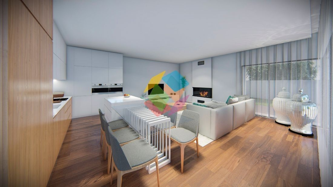 Moradia T4 Nova geminada, com localização privilegiada, excelentes acessos rodoviários (3 minutos da A1/A29) e à distância ao centro da Feira. , ,O Imóvel é constituído por 2 pisos (rés-do-chão e 1º piso) , ,Rés-do-Chão , ,Composto por hall de entrada, cozinha equipada e sala \"Open Space\" com recuperador de calor, quarto e uma casa de banho completa, no exterior temos um excelente logradouro, jardim, garagem para 2 carros e sala das máquinas. , ,1º Piso , ,Temos 3 quartos (um deles suite e com closet) e 2 casas de banho completas (uma delas da suite). , ,Existe a possibilidade da colocação do ar-condicionado, todavia o valor é em separado. , ,Conclusão: Setembro de 2020. , ,AMI 10354