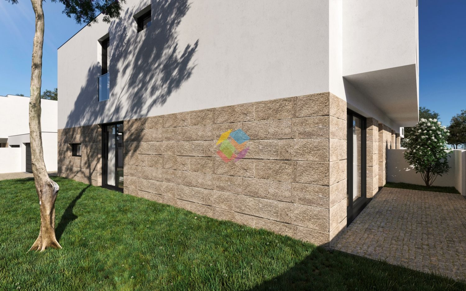 Moradia geminada em Lobão...No RÉS-DO-CHÃO: encontramos cozinha com 13,80 m2 completamente mobilada com moveis termolaminados e pedra granito angola e equipada com placa, forno, exaustor, etc....Hall de entrada com15,10 m2, sala com 38,50 m2..Um quarto com roupeiro embutido e uma área de 14,40 que poderá ser utilizado como escritório.Wc de serviço, garagem com 63 m2 e lavandaria. .No primeiro andar dispomos de 3 quartos com as seguintes áreas:.Quarto 1 e 2 com 15,30m2 , roupeiros embutidos e varanda de 6,65m2. .Wc de apoio aos quartos e hall de distribuição..Quarto principal com 20,85m2 ,Suite e um amplo vestiário...Principais acabamentos.Piso em flutuante, Lavandaria fechada, Painéis Solares, Pré-instalação de Aspiração central, Estores elétricos, Iluminação em led, Ar-condicionado, Garagem fechada para , Portões Automáticos, Pré-instalação de Alarme, Vídeo Porteiro, churrasqueira, Caixilharia Corte Térmico, Vidros duplos, Aquecimento central ligado ao recuperador de calor, Recuperador de calor, revestimento a capoto...AMI10354