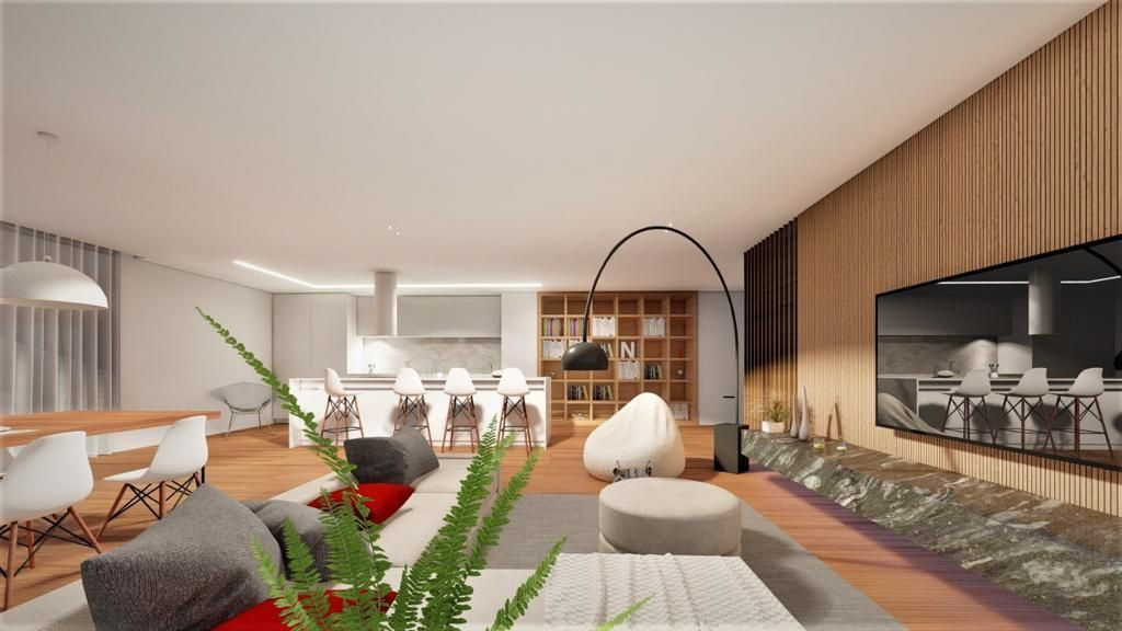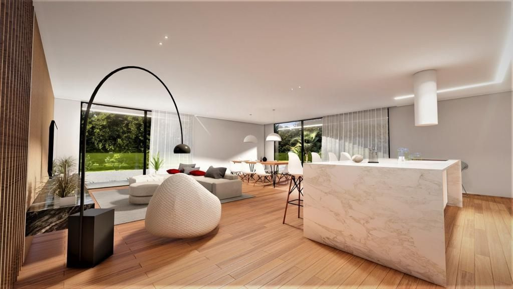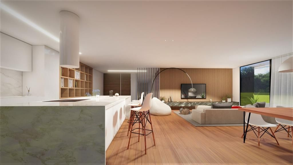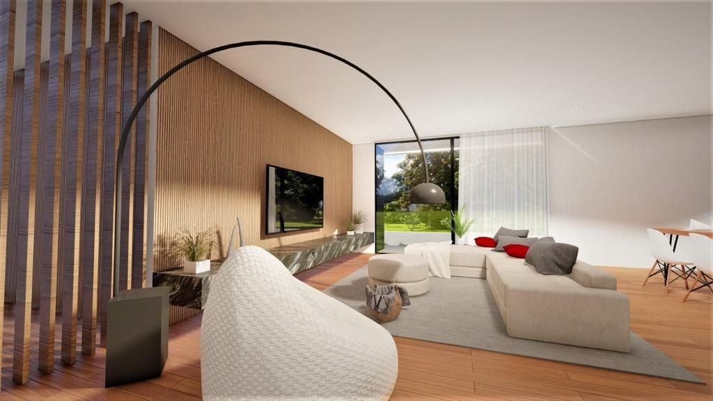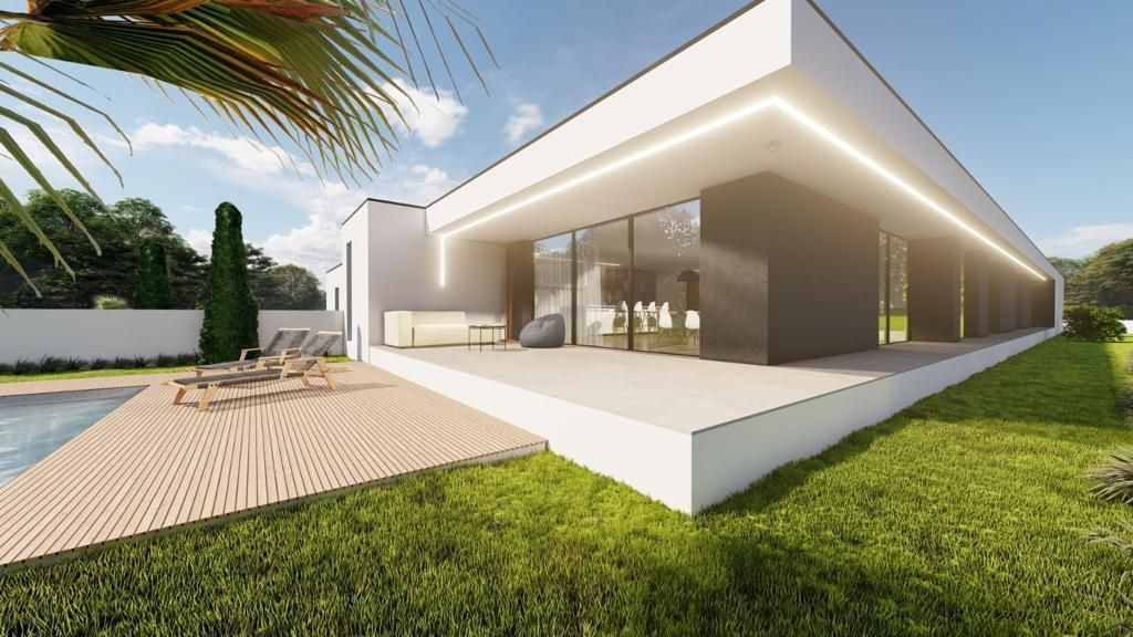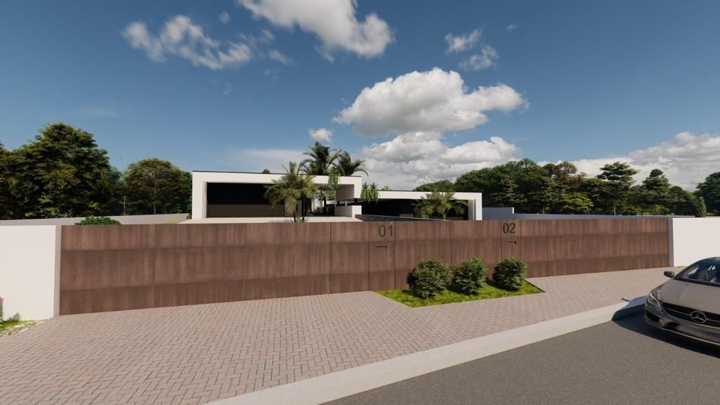 Moradia Térrea Germinada T3+1 em Santa Maria da Feira - Escapães, lote de 872m2..Exelente Esposição Solar, Nascente/sul.A 1 minuto dos principais acessos rodoviarios....- Início construção - 2022.- Finalização 2024.. - Caderno de Encargos.. Isolamento exterior térmico tipo EPS em capoto de 8cm de espessura.. Cobertura impermeabilizante com dupla tela asfáltica.. Paredes e tetos interiores revestidos com pladur hidrófugo, (exceto a garagem).. Caixilharias em alumínio com corte térmico, vidro duplo com gás árgon.. Blackouts elétricos com comando centralizado (quartos, cozinha, sala e wcs). Iluminação embutida em led. Pavimentos em piso vinílico de luxo à prova de água, de encaixe de 4mm rubicer ou equivalente (até 15/m2 pvp).. Carpintaria em madeira de sucupira com as portas e janelas até ao teto.. Rodapés embutidos.. Cozinha termolaminada (cor à escolha) com tampo em quartz tipo silestone.. Eletrodomésticos incluído da TEKA, Gama Digital, forno, micro-ondas, máquina de lavar loiça, frigorífico combinado, placa de indução e . exaustor de ilha. Louças sanitárias suspensas Rubicer, móveis de wc (até 250 pvp) e lavatórios Rubicer (até 100 pvp) bidé (até 100 pvp) e duche (até 150 . pvp).. Torneiras WC Imex modelo suécia ou equivalente.. WC de apoio aos quartos com banheira ou base de duche (até 700 pvp).. WC da Suite inclui base de duche ou banheira (opcional). Bases de duche tipo ardósia com resguardo em vidro (cor à escolha da base de duche).. Cerâmicas WC, marca Rubicer 60cm x 120cm, até 25/m2 pvp.. Pré instalação de ar condicionado.. Pré instalação de alarme e vide videovigilância.. Videoporteiro interativo.. Painel solar, para aquecimento de águas sanitárias com depósito exterior em inox.. Portões automáticos motorizados, os exteriores em ferro lacado e o interior seccionado.. Pisos exteriores e garagem em cerâmico de 60x60 ou lajetas tipo betão.. Pedra natural de xisto a forrar o muro da divisão das duas moradias. .. Jardim e piscina não incluído no valor. ..Marque já a sua visita...AMI 10354
